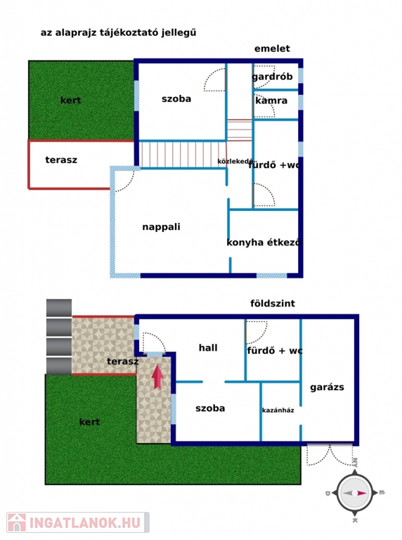- szintenkénti külön bejárási lehetőséggel, igy két lakrésszé is alakitható