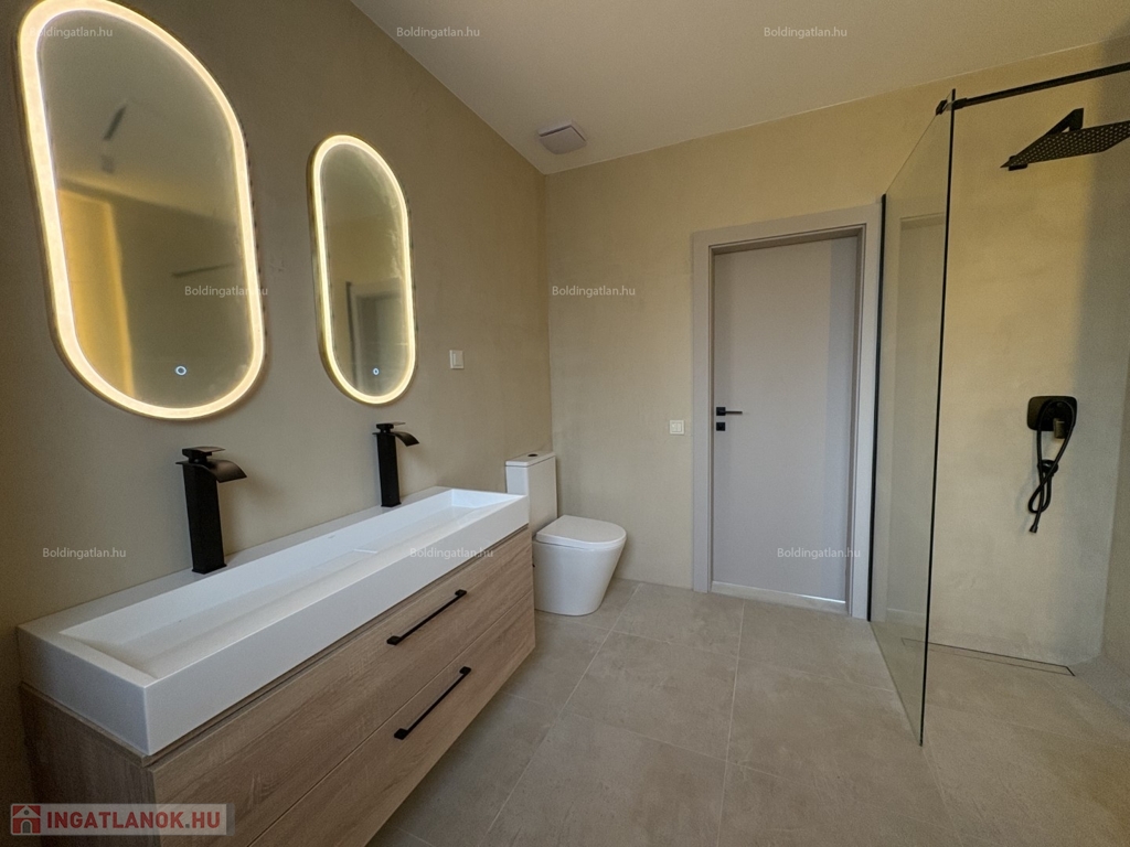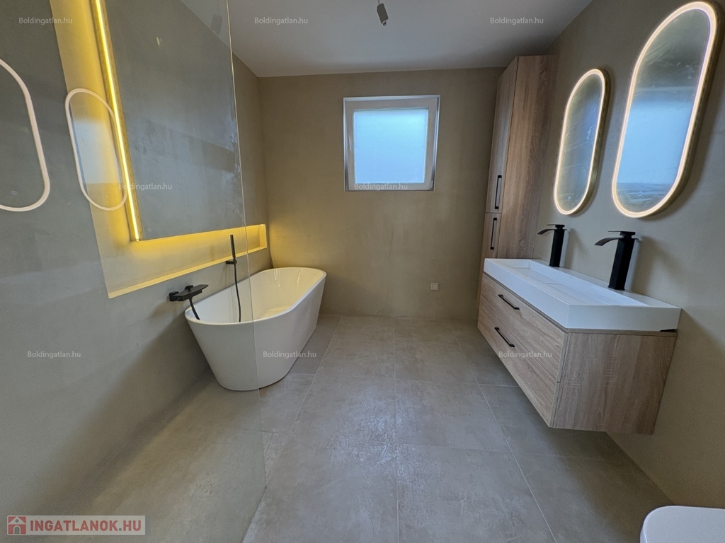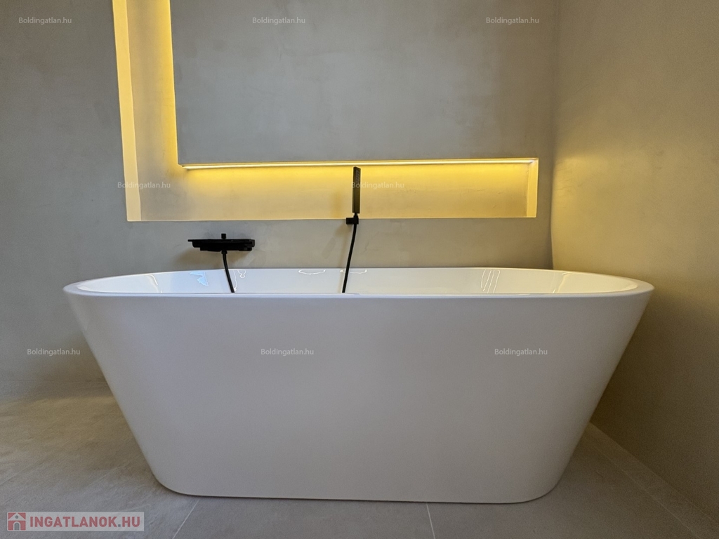 A fűtésről és hűtésről hőszivattyú gondoskodik, a hideg burkolatú helyiségekben padlófűtéssel, a szobákban Fan-Coil rendszerekkel. A könnyűszerkezetes Wolf rendszerű ház, kiváló hő és hangszigetelő adottságainak köszönhetően az energiatakarékosság garantált. A kényelmet tovább fokozzák a távirányítással működtetett alumínium redőnyök, a 3 rétegű nyílászárók, a modern beltéri ajtók, az otthon hangulatát mennyezetbe épített hangulatvilágítás tovább fokozza, valamint vízlágyító is felszerelésre került. Telek: 900 m2. Amennyiben az ingatlan felkeltette az érdeklődését, kérem hivatkozzon a 893. számú ajánlatra! Irodánk címe: Kaposvár Irányi D. u. 9.