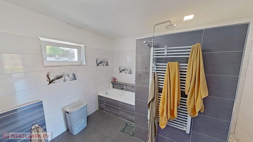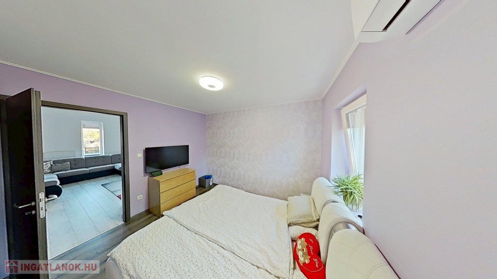 A ház fűtését télen egy takarékos pellet kazán biztosítja, enyhébb időben pedig akár a klímát is használhatjuk. Az ingatlan rendkívül energiatakarékos, és a további gazdaságosságot biztosítja a 7.5 kw-os napelemrendszer is.