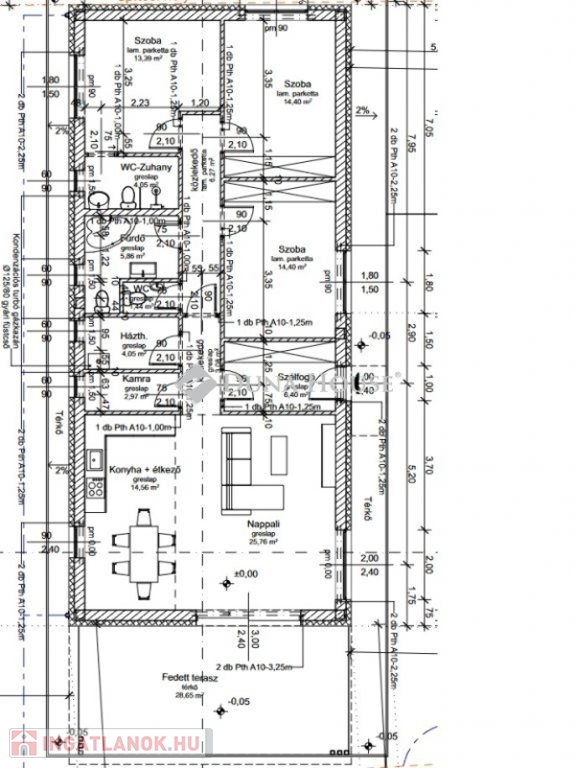 * **Közel 30 m²-es fedett terasz** a nappaliból nyílóan