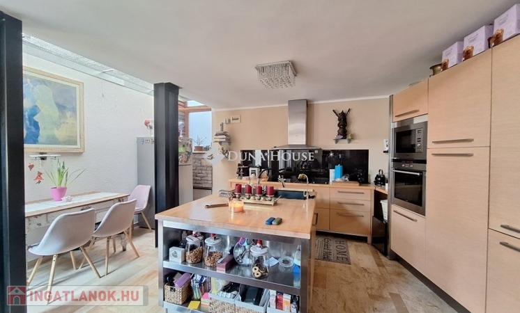 ===Egyedi stílusú mediterrán ház eladó====-Tettye védett részén található, zsákutcában- modern egyedi stílusú,mediterrán hangulatú- 2004-ben épült- amerikai konyhás 3 szobás családi ház,kis mediterrán udvarral- nappaliból közvetlen kapcsolt van a kis udvar felé, a speciális ajtó segítségével a nappali teljesen nyitottá tehető- tetőterasz is kialakitható- Süttői márvány kőburkolatok takarják el a lenti szint padlófűtését. Fent radiátorok vannak,gáz cirkó fűtéssel, Buderus kazánnal- napelemes 5,6 kw mely bővithető 7 kw-ra is akár- három klímával- központi porszívó,- vízlágyító,- riasztó,- szauna, - modern konyhabútor.- lenti szoba déli falán művészek készítették a különleges ablak üveget.- emeleti közlekedők egy része járó rács, ami átengedi a fényt a két szint közöttKülönleges otthonra vágysz?Hívj!
