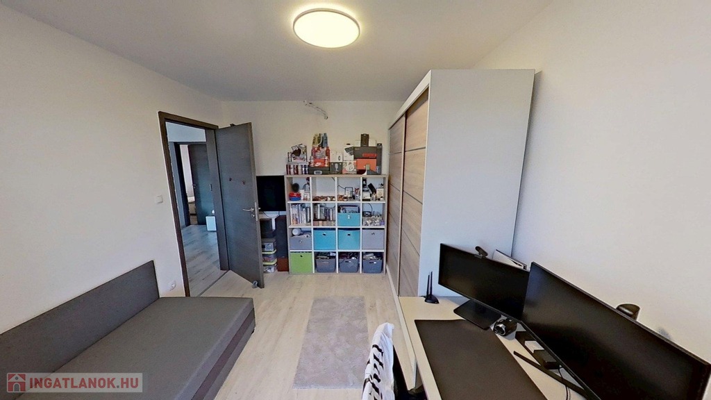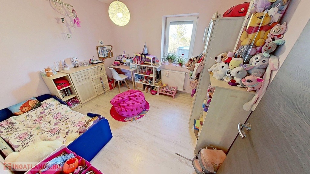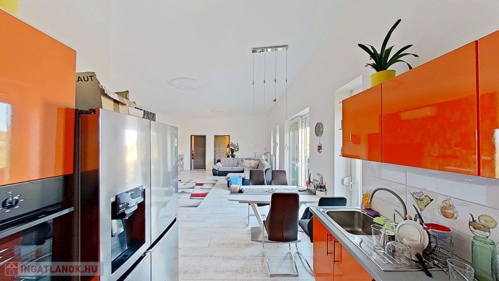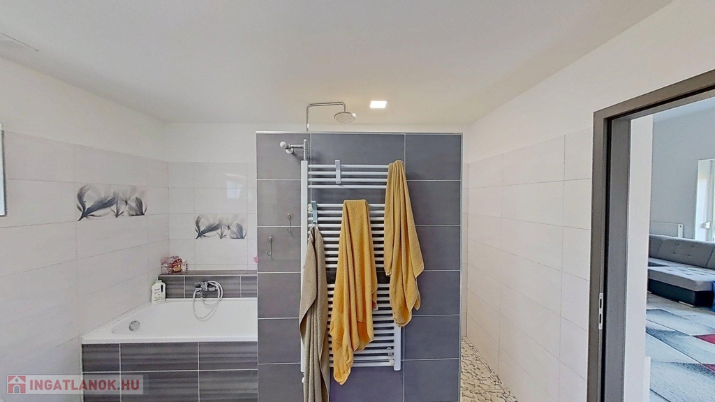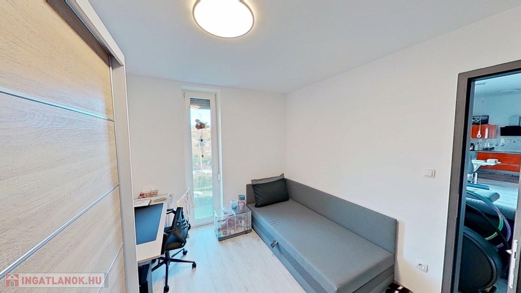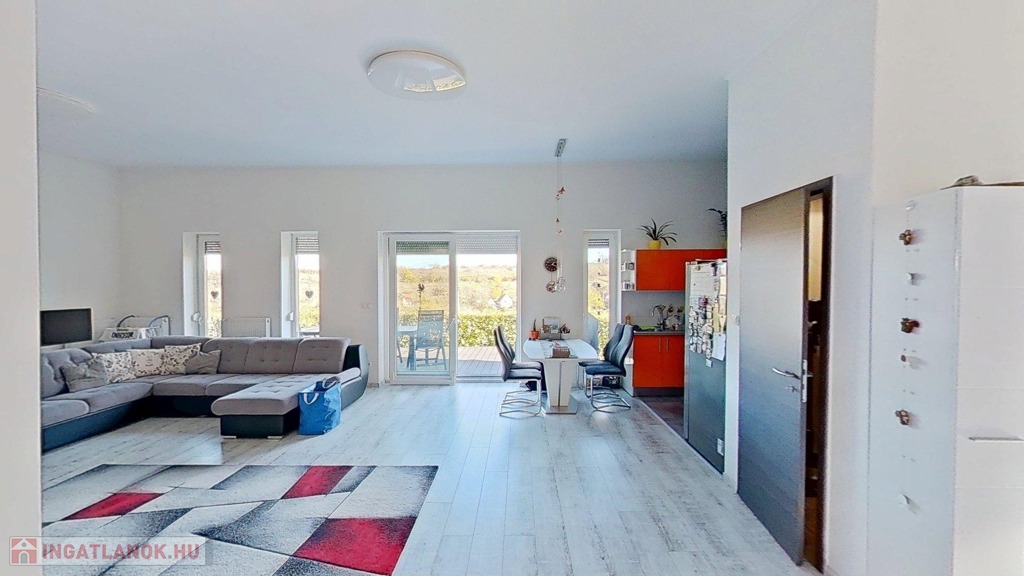 A ház elosztása nem is lehetne jobb, az egy szinten minden a hatalmas nappaliból nyílik. Innen nyílik 3 hálószoba - a szülői háló ráadásul nagy gardrób szobával is rendelkezik - fürdő, valamint innen lehet kimenni a páratlan panorámával bíró, 20 nm-es teraszra is.