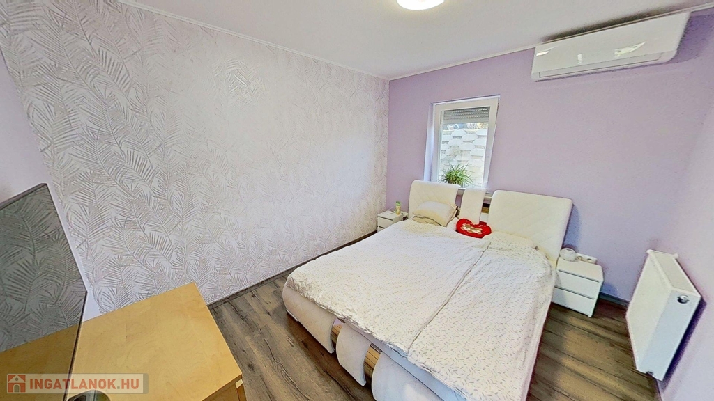 A ház fűtését télen egy takarékos pellet kazán biztosítja, enyhébb időben pedig akár a klímát is használhatjuk. Az ingatlan rendkívül energiatakarékos, és a további gazdaságosságot biztosítja a 7.5 kw-os napelemrendszer is.