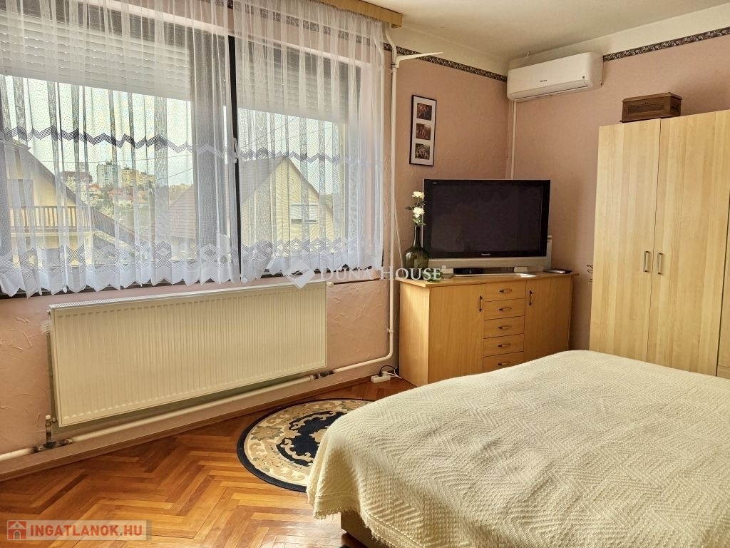 Pécsett, a Szántó László utcában egy kiváló adottságokkal rendelkező, több generáció együttélésére vagy akár vállalkozás céljára is alkalmas családi ház.Az 1984-ben épült, utcafronti ingatlan összesen 150 m² lakóterű. Alsó szintjén tágas nappali, két külön nyíló szoba, fürdőszoba, nagyméretű konyha étkezővel, valamint kamra kapott helyet. A tetőtérben további 2 és fél szoba, egy konyha-étkező, fürdőszoba és egy erkély található, így akár külön lakrészként is használható. Az épület alatt egy 46 m²-es alagsor is rendelkezésre áll, amely tárolásra vagy egyéb célra kiváló.Az ingatlan fűtéséről gázcirkó kazán gondoskodik, emellett klímaberendezések is biztosítják a komfortot.A 692 m²-es telken található egy különálló, 1997-ben épült, kétszintes ingatlan is, amely számos lehetőséget rejt magában. Az alsó, 32 m²-es szinten amerikai konyhás nappali és WC került kialakításra, míg a tetőtérben (szintén 32 m²) 3 félszoba, fürdőszoba, külön WC és közlekedő található. Ez az épület ideális lehet külön lakrésznek, irodának vagy bármilyen vállalkozási tevékenységre.Az ingatlanhoz tartozik továbbá két garázs, összesen 66 m² alapterülettel.A környék csendes, rendezett, jó szomszédsággal. A buszmegálló néhány perc sétára található, autóval pedig minden fontos intézmény, bevásárlási lehetőség és szolgáltatás 10 percen belül elérhető.Az ingatlan kiváló választás nagycsaládosoknak, több generáció számára, illetve mindazoknak, akik otthonról végezhető vállalkozásban gondolkodnak, és ehhez külön életteret szeretnének kialakítani.Bővebb információért, megtekintésért, várom hívását!