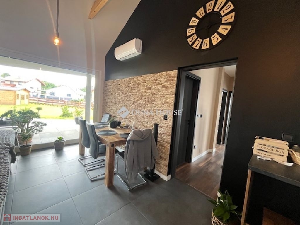Eladásra kínálok Pécsen, Újhegyen, dinamikusan fejlődő városrészben egy 2022-ben épült 142 nm-es 3 szoba,nagy méretű konyha+nappali+ étkezős, 2 fürdőszoba+wc-s, nagy fedett teraszos családi otthont.A ház 1220nm-es telken áll, könnyűszerkezetes nagy belmagassággal a nappali teteje szalufáig burkolva van.Melléképülete külön álló, 30nm-es , melyben jelenleg konditerem van.A házra napelemek vannak telepítve 10KW-os teljesítménnyel.Automatikus öntözőrendszer,1,5 3m-es víztartály,riasztó+kamera rendszer,padlófűtés,elektromos redőnyök,szúnyoghálók az ablakon,elektromos kapu.Ebből adódóan a ház o rezsi-s.Annak ajánlom e szép házat , aki szereti a nagyváros közelségét és mégis csendre és nyugalomra a természet közelségére vágyik.Ha a ház felkeltette érdeklődését, kérem hívjon és tekintse meg!
