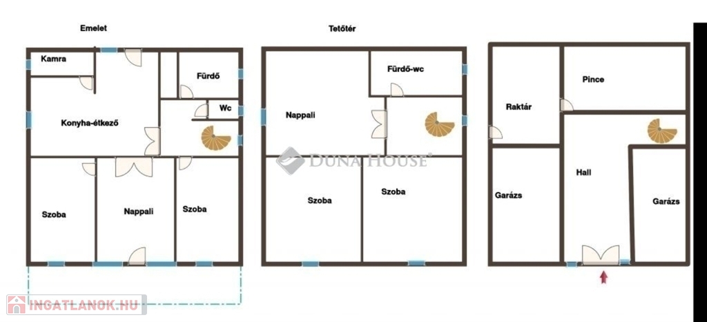 Az alsó szinten pince, tároló, valamint egy külön nappali (hal) található, amely kiváló klímájú, köszönhetően az alápincézett kialakításnak.