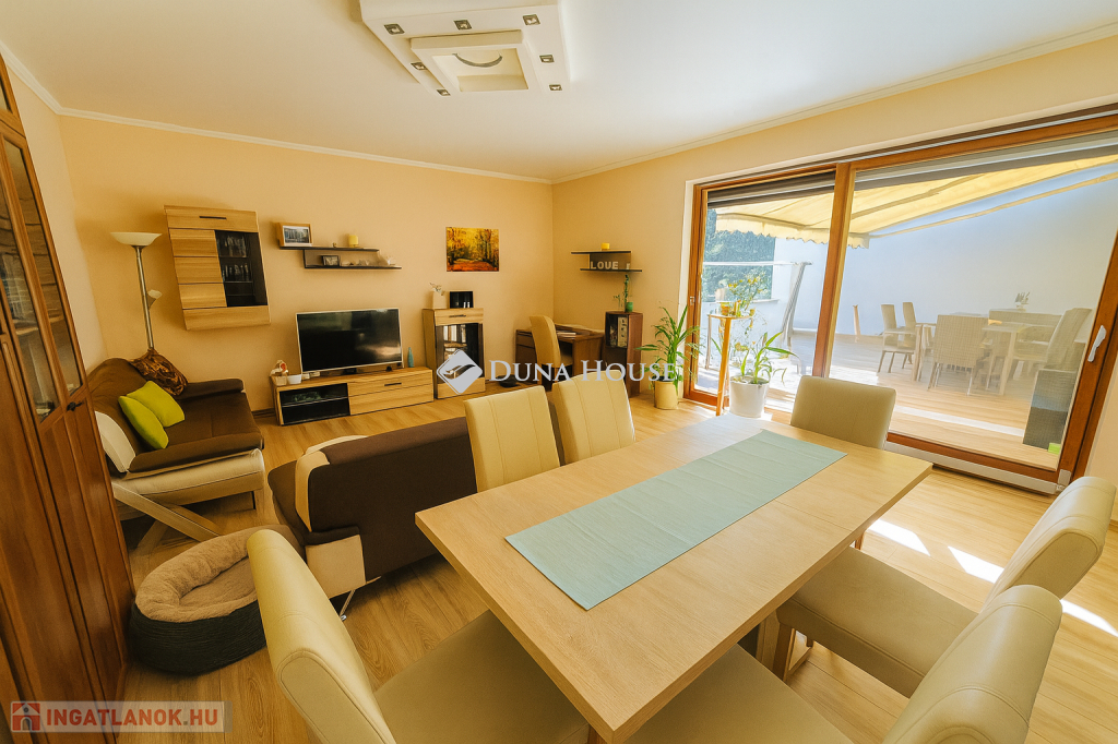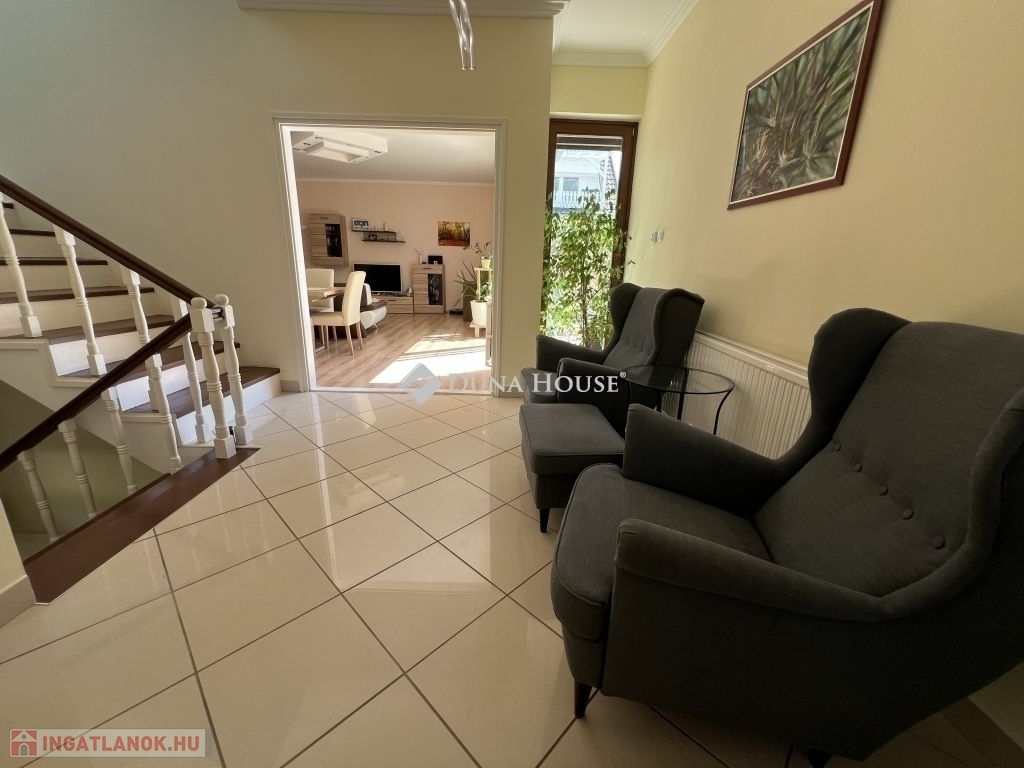 Kivételes lehetőség a Bálicsi úton medencés ház Pécs egyik legkeresettebb részén!Eladásra kínálok egy medencés, háromszintes, 200 m²-es, dupla garázzsal rendelkező sorházat a belvárostól mindössze pár percre, a Bálicsi úton. Az ingatlan ideális választás azok számára, akik értékelik a tágas tereket, a modern kényelmet és a természetközeli életérzést.Az ingatlan főbb jellemzői:Nagy medence, melyből csodálatos panoráma nyílik a TV-toronyra és a Mecsekre.34,45 m²-es keleti tájolású panorámás terasz, amely kiváló helyszín a reggeli kávéhoz vagy baráti összejövetelekhezÁsott kút a kertben, amely az automata öntözőrendszert tápláljaHőszivattyús fűtés (2 éve kiépítve) + tartalék gázkazánSzinte nulla rezsi a korszerű 12,3 kW-os napelemrendszernek köszönhetően (üzembe helyezés: 2022.12., szaldó: 2032.12-ig, 2024-ben 12,6 MWh termelés!)5 szoba és 2 fürdőszobaGondozott díszkert és konyhakert kertész által karbantartvaModern elektromos hálózat: új konnektorok, biztosítékok kint és bent, 3x20A teljesítményElektromos redőnyökNagy sebességű LAN hálózat minden szobában kiépítveKlímák a tetőtérben, a ház alsó szintje nyáron is kellemes hőmérsékletű, így légkondi nélkül használhatóPrémium LED design világítás minden helyiségbenEz az ingatlan egyszerre kínál luxust, kényelmet és költséghatékony fenntarthatóságot. A keletre néző terasz egész nyáron hűvös, a hatalmas medence pedig garantálja a nyári kikapcsolódást.
