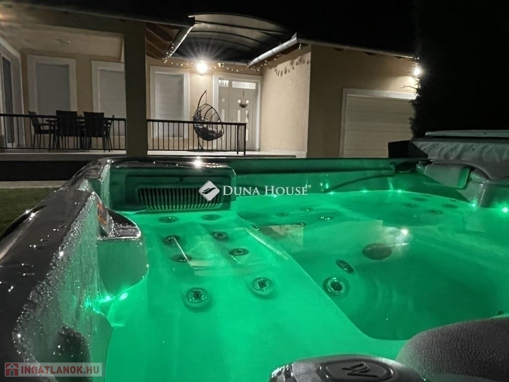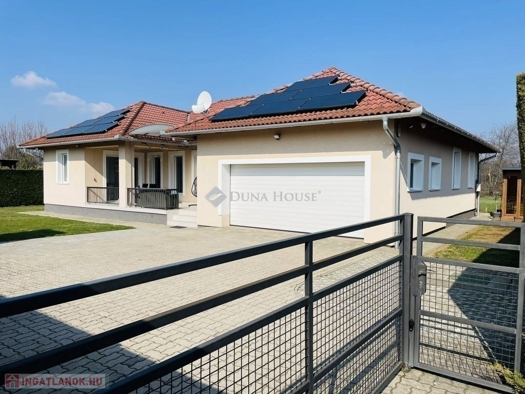 Modern családi ház PécsÚjhegyen napelemmel és dupla garázzsalPécs Újhegy csendes részén, a Barázda utcában eladó egy 2010-ben épült, egyszintes családi ház, amely ideális választás lehet családok számára.164 m² összterület 132 m² lakótér 32 m² kétállásos garázsHelyiségek: amerikai konyhás nappali étkezővel 3 hálószoba gardróbszoba 2 fürdőszoba + vendég WC kamra és háztartási helyiség 20 m² fedett teraszFőbb műszaki jellemzők:Viessmann gázkazánpadlófűtés és radiátorvízteres kandallóHoneywell helyiségenként szabályozható fűtés5,2 kW klíma3x25 Amper 7 kW napelem rendszer szaldó elszámolással 2030.12.31-igExtrák: elektromos alumínium redőnyök elektromos garázskapu és kertkapu riasztórendszer és kamerarendszer vízlágyítóUdvar: * telepített robotfűnyíró* privát kert Leylandi sövénnyel* privát játszótér* kerti sütő / grill rész* 10 m² faház* fatároló* finn szauna és jakuzzi* 10m3-es ciszterna gépesítve öntözésre* gyümölcsfákNyugodt, családi házas környezet, tágas és világos terekkel.Minden adott, hogy ez legyen az új, komfortos otthona.Érdeklődés esetén keressen bizalommal. Tekintsük meg együtt, hogy személyesen is meggyőződhessen, ez amit eddig keresett!