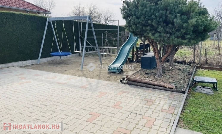 Modern családi ház PécsÚjhegyen napelemmel és dupla garázzsalPécs Újhegy csendes részén, a Barázda utcában eladó egy 2010-ben épült, egyszintes családi ház, amely ideális választás lehet családok számára.164 m² összterület 132 m² lakótér 32 m² kétállásos garázsHelyiségek: amerikai konyhás nappali étkezővel 3 hálószoba gardróbszoba 2 fürdőszoba + vendég WC kamra és háztartási helyiség 20 m² fedett teraszFőbb műszaki jellemzők:Viessmann gázkazánpadlófűtés és radiátorvízteres kandallóHoneywell helyiségenként szabályozható fűtés5,2 kW klíma3x25 Amper 7 kW napelem rendszer szaldó elszámolással 2030.12.31-igExtrák: elektromos alumínium redőnyök elektromos garázskapu és kertkapu riasztórendszer és kamerarendszer vízlágyítóUdvar: * telepített robotfűnyíró* privát kert Leylandi sövénnyel* privát játszótér* kerti sütő / grill rész* 10 m² faház* fatároló* finn szauna és jakuzzi* 10m3-es ciszterna gépesítve öntözésre* gyümölcsfákNyugodt, családi házas környezet, tágas és világos terekkel.Minden adott, hogy ez legyen az új, komfortos otthona.Érdeklődés esetén keressen bizalommal. Tekintsük meg együtt, hogy személyesen is meggyőződhessen, ez amit eddig keresett!