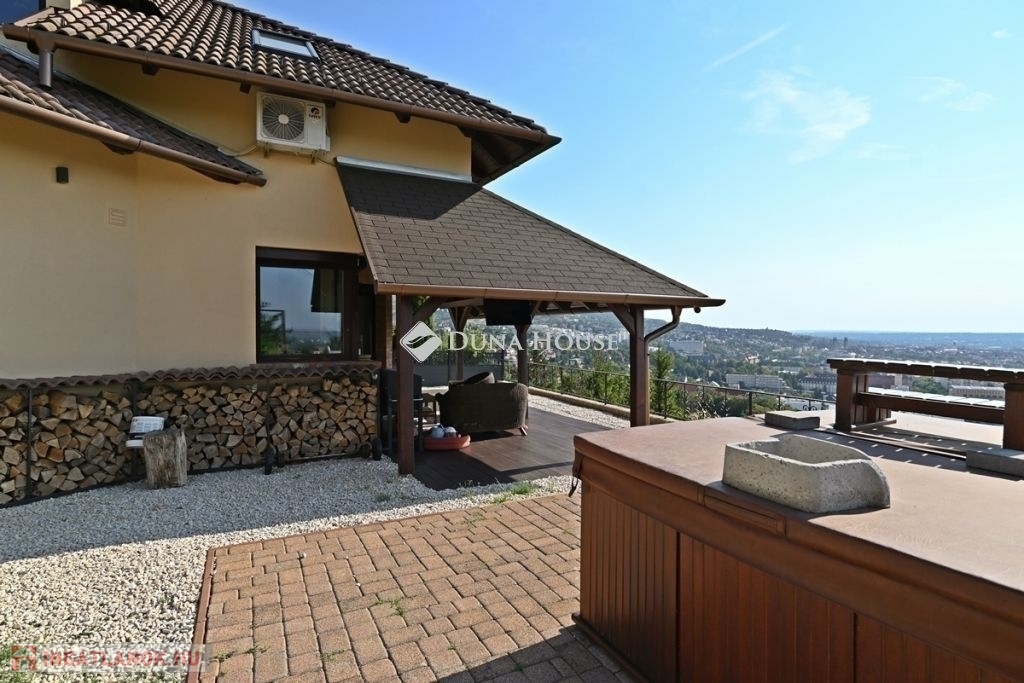 Pécs egyik legkeresettebb zöldövezeti részén, Makárban, 147-es, 4 szobás, modern ház, mely 1000 m2-es, telken helyezkedik el. A ház legkorszerűbb építőanyagokból, magas műszaki tartalommal, kifogástalan állapotú, modern technológiákkal, kiváló hőszigeteléssel épült, így hosszú távon is energiatakarékos és értékálló otthon.Főbb jellemzők:-147 m2-es lakótér, kiváló elrendezésű, tágas és világos- szobák száma: 4- saját önálló garázs- 54 m2 fedett terasz, tökéletes családi és baráti összejövetelekhez- örökpanorámás kilátás a városra és a Mecsekre- utcafronttól meredek térkövezett felhajtó a garázshoz, - autóval történő megközelítés biztosítottExtrák:- jakuzzi - privát wellness az otthonodban- riasztórendszer - maximális biztonság-klímaberendezés - kellemes hőmérséklet egész éveben- elektromos kapu - modern és kényelmes bejutás- külső tokos alumínium elektro9mos redőnyök - extra komfort és biztonság- beépített okos mosógép- gázfűtés - gazdaságos üzemeltetés- kandalló - hangulatos kiegészítő és alternatív fűtési lehetőségAz ingatlan csendes, elegáns környezetben helyezkedik el, mégis közel a belvároshoz. A környék kiváló infrastruktúrával rendelkezik, iskola, óvoda, bevásárlási lehetőségek és tömegközlekedés a közelben. A lenyűgöző panoráma és a prémium felszereltség együttese egyedülálló, értékálló otthont kínál igényes családok vagy befektetők számára.