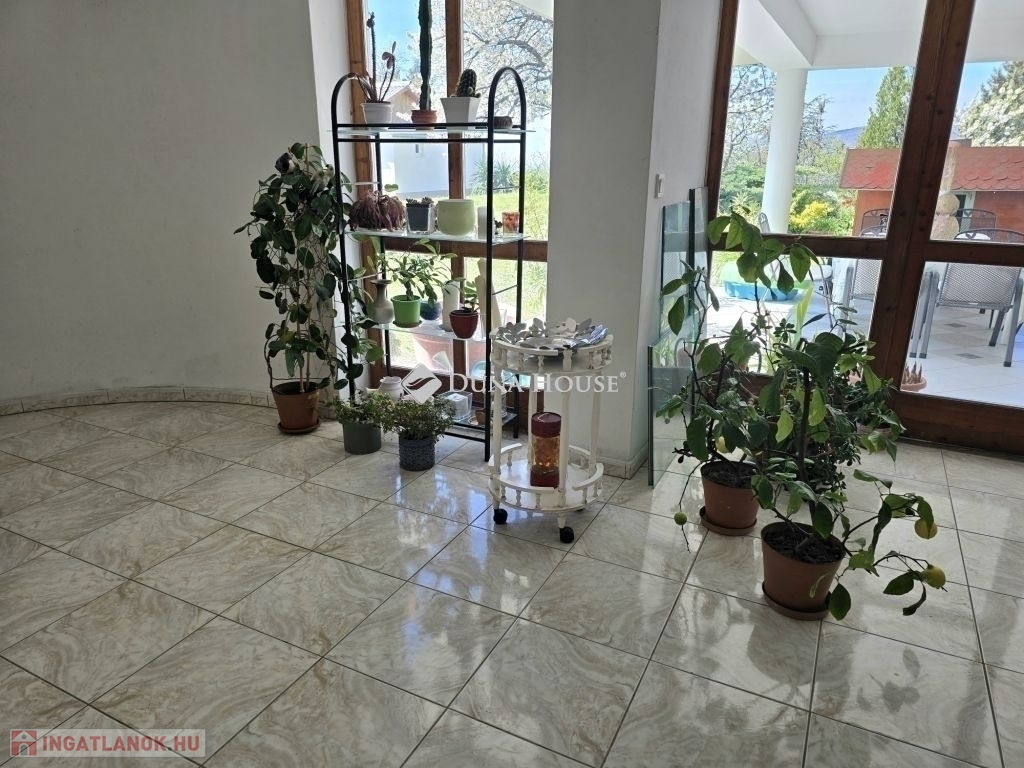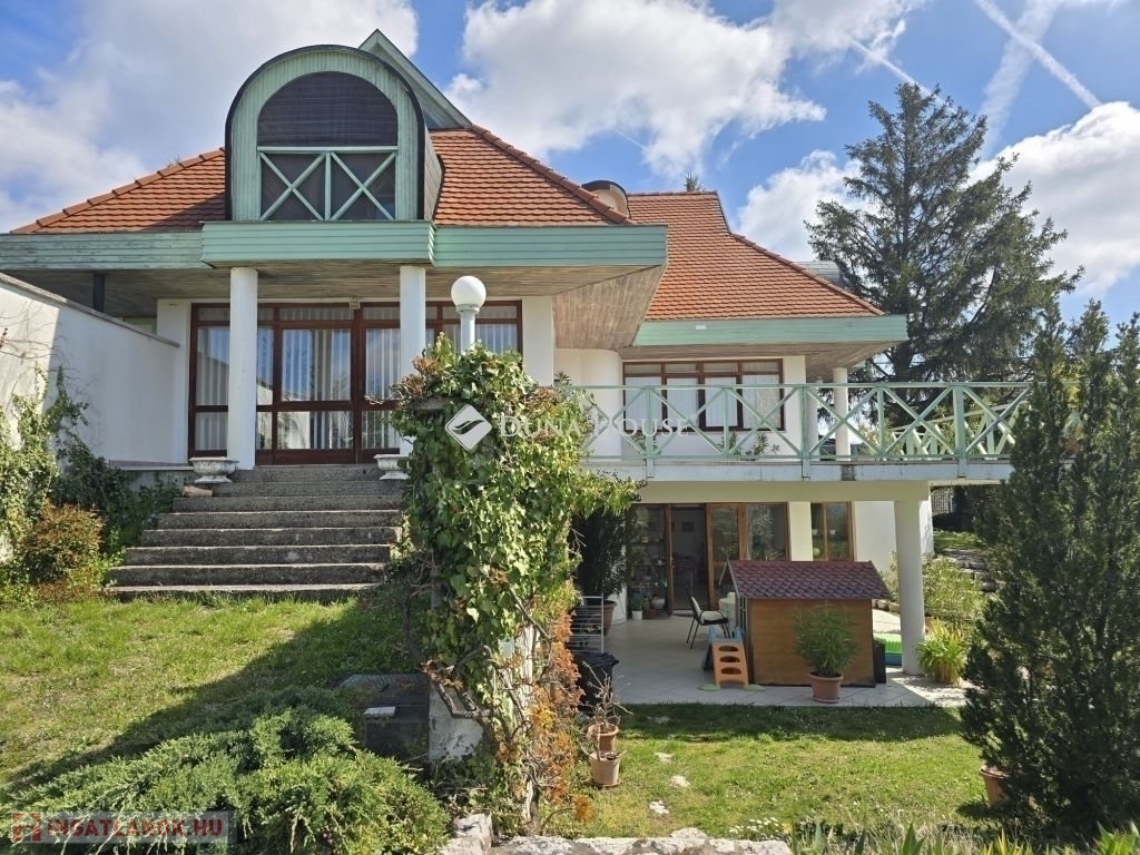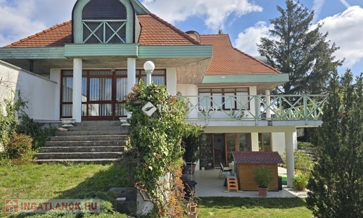 Pécs - Mecsekoldali részén eladó egy panorámás, többgenerációs, háromszintes, egyedi tervezésű családi ház,- vendégházzal - mely 1870 m²-es telken helyezkedik el, a három szint hozzávetőlegesen 240 nm területű.Az exkluzív adottságú ingatlan 2000-ben épült, az Ybl díjas építész, Bachmann Zoltán tervei alapján, minőségi alapanyagok felhasználásával.Az épületben a három szintet összekötő lépcső, illetve a hidegburkolatok nagy kopásállóságú márványból , bádogos munkái rézből készültek, falazata Porotherm tégla.Az épület gáz illetve vegyes tüzelésű kazánnal is fűthető, padlófűtéssel és radiátorokkal szerelve, tetőszerkezetét 10 cm szigeteléssel látták el.Elosztása: 6 szoba, nappali, étkező, konyha, szintenként egy fürdőszoba, valamint két nagyméretű terasz, illetve egy garázs és egy további, 27 m²-es felső terasz tartozik hozzá.A szobákból lenyűgöző panoráma nyílik dél felé, a völgyben elterülő Pécs városára és a Nyugat-Mecsek vonulataira.A kert mediterrán hangulatot áraszt, különleges növényekkel beültetve.Az épület riasztóval és kamerarendszerrel felszerelt, automata kapu és garázs nyitó szerkezettel rendelkezik. Az ingatlanhoz egy egyállásos aknás garázs tartozik, elektromos nyitással.A terület lakóépülettől távolabbi részén egy 40 nm-es önálló lakóingatlan került kialakításra, mely 15 cm szigeteléssel és korszerű nyílászárókkal ellátott.Az épület belső kialakítása az új tulajdonos feladata, viz és villany bevezetve.A telken három esővízgyűjtő ciszterna található, összesen 60 m³ kapacitással.A kertből megközelíthető egy hangulatos téglaboltozatos borospince is, mely kellemes hely lehet a borok és a borászat kedvelőinek.A kert szépen gondozott, gyümölcsfák, díszbokrok is helye kaptak, illetve 10 sor csemegeszőlő. Stílus, mediterrán hangulat, kiváló lokáció.Nyugodt, zöldövezeti környezet, gyönyörű naplemente, tiszta levegő.Amennyiben Ön is erre vágyik, várom megtisztelő érdeklődését!