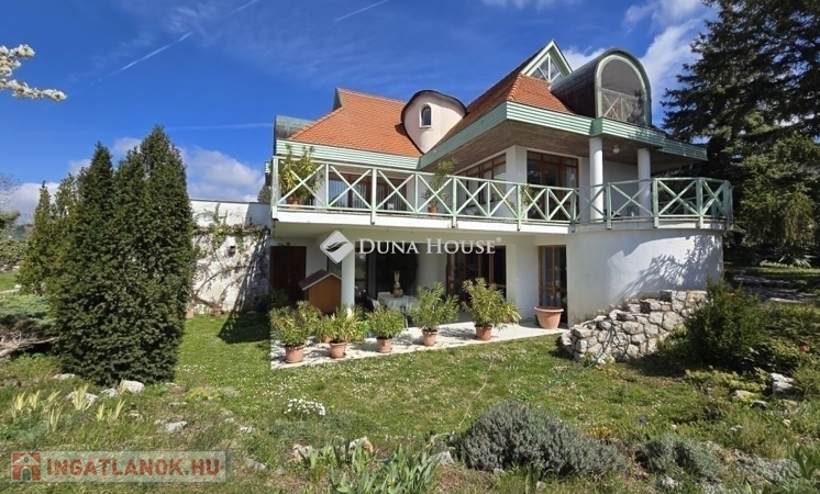 Pécs - Mecsekoldali részén eladó egy panorámás, többgenerációs, háromszintes, egyedi tervezésű családi ház,- vendégházzal - mely 1870 m²-es telken helyezkedik el, a három szint hozzávetőlegesen 240 nm területű.Az exkluzív adottságú ingatlan 2000-ben épült, az Ybl díjas építész, Bachmann Zoltán tervei alapján, minőségi alapanyagok felhasználásával.Az épületben a három szintet összekötő lépcső, illetve a hidegburkolatok nagy kopásállóságú márványból , bádogos munkái rézből készültek, falazata Porotherm tégla.Az épület gáz illetve vegyes tüzelésű kazánnal is fűthető, padlófűtéssel és radiátorokkal szerelve, tetőszerkezetét 10 cm szigeteléssel látták el.Elosztása: 6 szoba, nappali, étkező, konyha, szintenként egy fürdőszoba, valamint két nagyméretű terasz, illetve egy garázs és egy további, 27 m²-es felső terasz tartozik hozzá.A szobákból lenyűgöző panoráma nyílik dél felé, a völgyben elterülő Pécs városára és a Nyugat-Mecsek vonulataira.A kert mediterrán hangulatot áraszt, különleges növényekkel beültetve.Az épület riasztóval és kamerarendszerrel felszerelt, automata kapu és garázs nyitó szerkezettel rendelkezik. Az ingatlanhoz egy egyállásos aknás garázs tartozik, elektromos nyitással.A terület lakóépülettől távolabbi részén egy 40 nm-es önálló lakóingatlan került kialakításra, mely 15 cm szigeteléssel és korszerű nyílászárókkal ellátott.Az épület belső kialakítása az új tulajdonos feladata, viz és villany bevezetve.A telken három esővízgyűjtő ciszterna található, összesen 60 m³ kapacitással.A kertből megközelíthető egy hangulatos téglaboltozatos borospince is, mely kellemes hely lehet a borok és a borászat kedvelőinek.A kert szépen gondozott, gyümölcsfák, díszbokrok is helye kaptak, illetve 10 sor csemegeszőlő. Stílus, mediterrán hangulat, kiváló lokáció.Nyugodt, zöldövezeti környezet, gyönyörű naplemente, tiszta levegő.Amennyiben Ön is erre vágyik, várom megtisztelő érdeklődését!