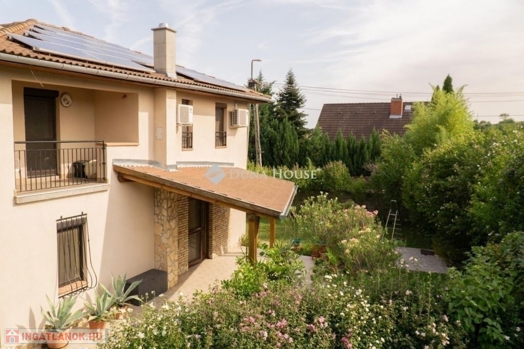 200 nm-en, 2 szinten amerikai konyha-nappali-étkező, 5 szoba, 2 fürdőszoba-wc, 1 önálló wc, emeleti lodzsa, kertkapcsolatos terasz és dupla garázs gondoskodik a lakók kényelméről. Az alsó szinten található az amerikai konyhás nappali-étkező, fürdőszoba wc-vel, + külön wc, és egy 10 nm-es szoba. A nappaliból 40 nm-es, kertkapcsolatos terasz nyílik a hátsó udvarrész felé. A felső szinten 3 db 12 nm-es szoba, fürdőszoba wc-vel és egy 12 nm-es gardrób szoba található. Utóbiban kapott helyet az új gázkazán, továbbá egy infraszauna is. A tágas, 43 nm-es dupla garázs praktikusan a házból is megközelíthető. A telken egy cca. 20 nm-es önálló tároló épület is található. Az épület 2009-ben prémium hőszigetelésű Ytong téglából épült. Klasszikus homlokzata capuccino barna színben, sötétbarna fa ablakaival és barna alumínium redőnyeivel mediterrán érzést áraszt.