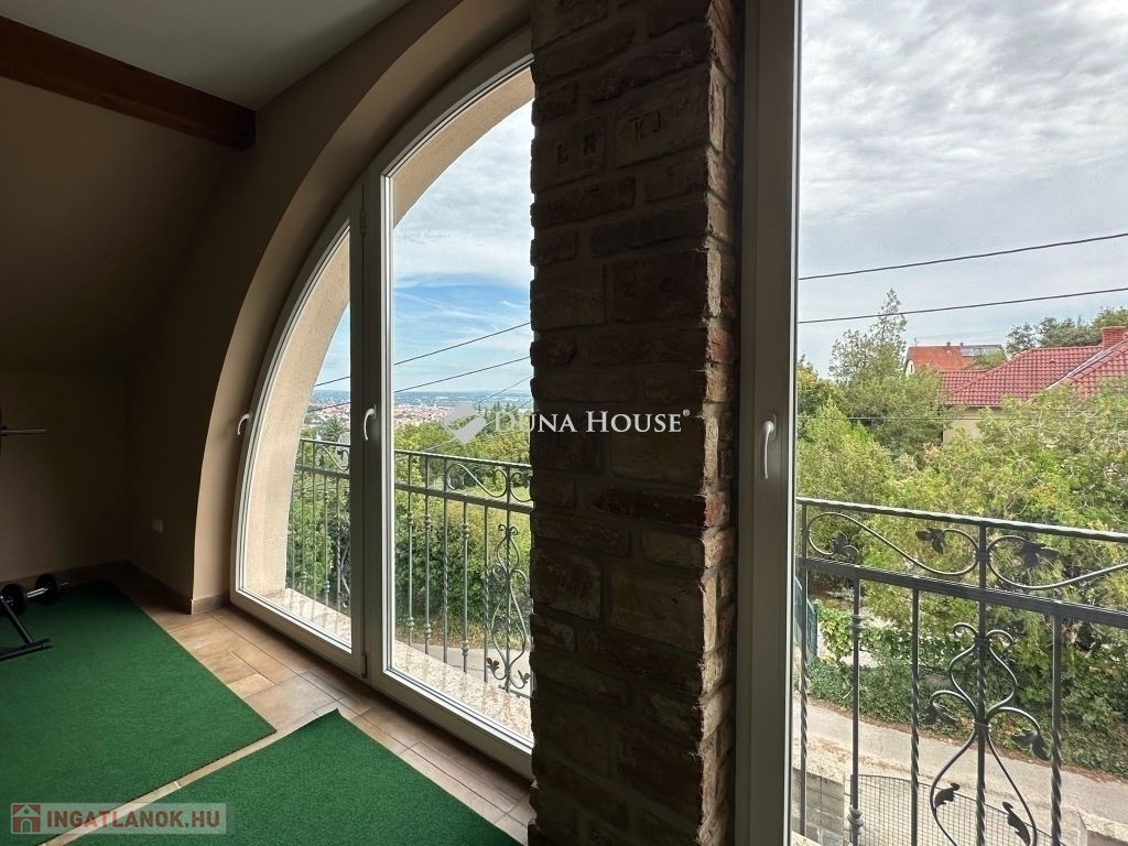 Eladásra kínálunk egy panorámás, 300 m²-es, 7 szobás, dupla komfortos, téglaépítésű , akár 2 generáció együttélésére is alkalmas családi otthont.Ne hagyja ki ezt a különleges lehetőséget, hogy a város felett, de mégis közel annak szívéhez élhessen. A mindkét fürdőszoba designja különleges figyelmet kapott, ahol a minőségi burkolatok és szaniterek mellett egyedi világítás gondoskodik a relaxáló atmoszféráról. Itt a nap bármely szakában élvezhetjük a kényeztetést és a privát wellness élményét. Fedett teraszon. Jakuzzi található.Elektromos autótöltés kiépítve. A modern, teljesen felszerelt konyha minden igényt kielégít, legyen szó akár egy gyors reggeliről vagy egy nagyobb családi vacsoráról. Az ingatlan klímával , elektromos redőnnyel felszerelt. Keressen minket bizalommal az ingatlan megtekintéséhez, és tegyen szert erre a kivételes otthonra.