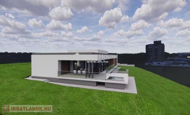 Pécs-Mecsekoldalon eladó egy ÚJ ÉPÍTÉSŰ, LUXUS minőségben, modern gépészettel( LEVEGŐ-VÍZ HŐSZIVATTYÚ-padlófűtéssel) kivitelezett, lapostetős, EGYSZINTES családi ház 1221m2-es ÖRÖKPANORÁMÁS, összközműves telken.