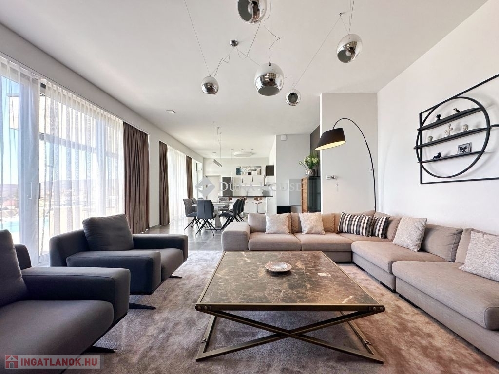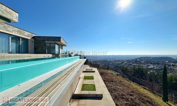 Exkluzív panorámás családi ház eladó Pécs MecsekoldalánPécs, Mecsekoldalon kínálunk megvételre kivételes adottságokkal rendelkező, újszerű állapotú családi házat. A gondosan megtervezett terek, a prémium anyaghasználat és a lenyűgöző körpanoráma tökéletes harmóniát alkotnak.Főbb jellemzők: 220 m² letisztult, elegáns lakótér 2087 m²-es, teljes intimitást biztosító telek 3 hálószoba, 2 fürdőszoba Világos, nagyvonalú belső terek, modern élettér-kialakítás 60 m²-es panorámás, részben fedett terasz 45 m²-es feszített víztükrű medence Privát szauna a teljes kikapcsolódásért Zavartalan körpanoráma Prémium műszaki tartalom: Energiahatékony hőszivattyús rendszer Wolf központi szellőztető rendszer Vízlágyító és automata öntözőrendszer Elektromos zsalúziák minden nyílászárón Riasztó- és kamerarendszer Magas szintű kivitelezés: 38-as PTH falazat, 10 cm-es hőszigeteléssel Modern alumínium nyílászárók Időtálló, elegáns mészkő homlokzat Prémium burkolatok: minőségi laminált parketta és mázas kerámia 40 m²-es garázs Hörmann kapuval Teljesen intim, zárt telek További értékek: Az ingatlan mindössze 5 éve épült, újszerű állapotban van Igény esetén teljes bútorzattal (megegyezés szerint) A vételár részét képezi egy kb. 700 m²-es, panorámás, részben közművesített telekrészEz az ingatlan ideális választás azok számára, akik kompromisszumok nélkül keresnek exkluzív otthont, páratlan környezetben.További információért kérem, keressen bizalommal!