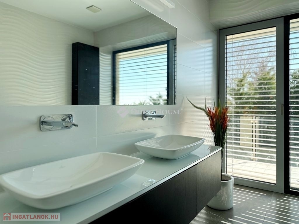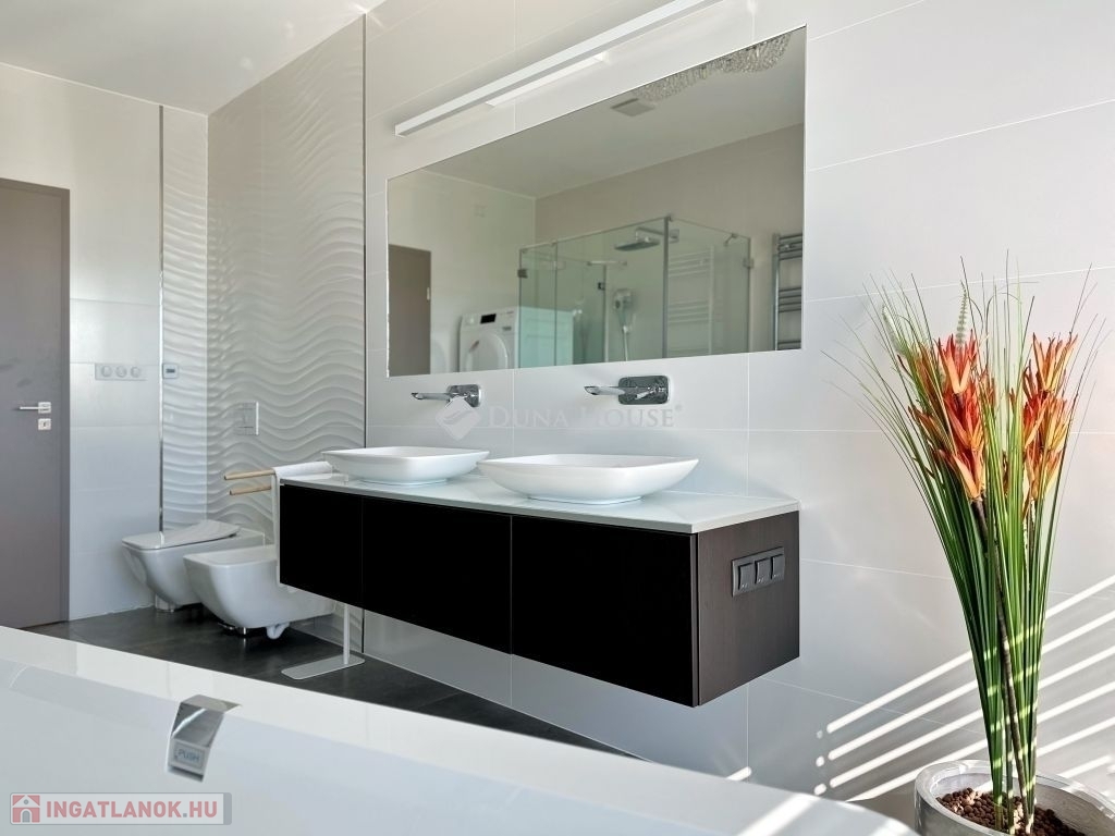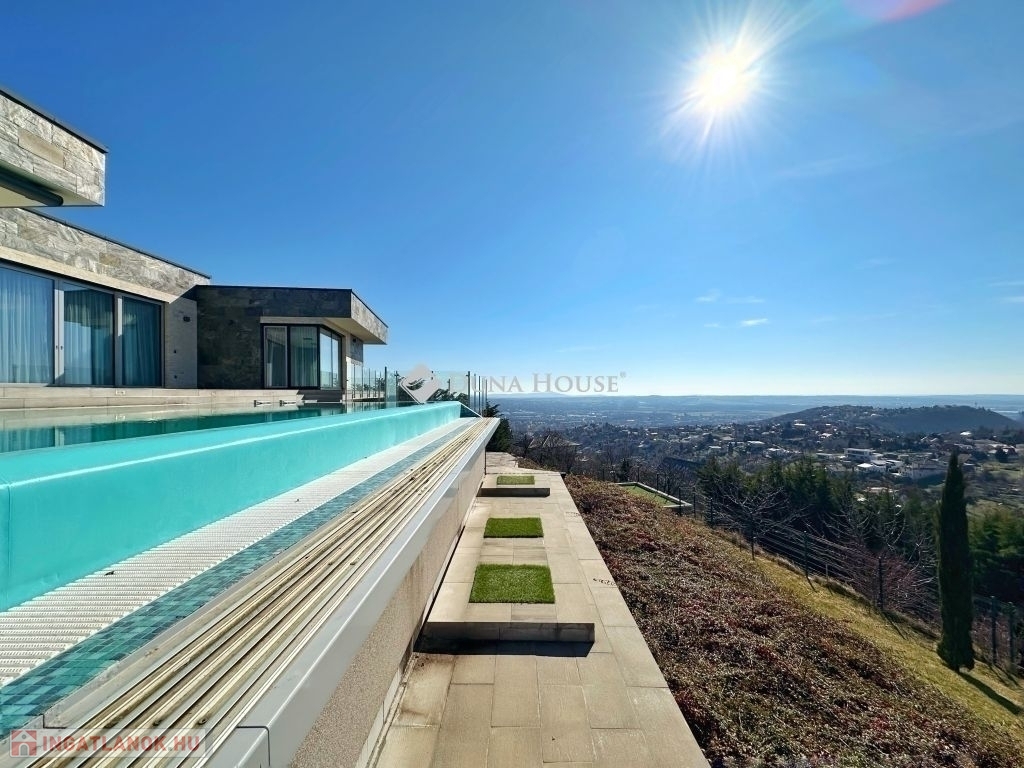 Exkluzív panorámás családi ház eladó Pécs MecsekoldalánPécs, Mecsekoldalon kínálunk megvételre kivételes adottságokkal rendelkező, újszerű állapotú családi házat. A gondosan megtervezett terek, a prémium anyaghasználat és a lenyűgöző körpanoráma tökéletes harmóniát alkotnak.Főbb jellemzők: 220 m² letisztult, elegáns lakótér 2087 m²-es, teljes intimitást biztosító telek 3 hálószoba, 2 fürdőszoba Világos, nagyvonalú belső terek, modern élettér-kialakítás 60 m²-es panorámás, részben fedett terasz 45 m²-es feszített víztükrű medence Privát szauna a teljes kikapcsolódásért Zavartalan körpanoráma Prémium műszaki tartalom: Energiahatékony hőszivattyús rendszer Wolf központi szellőztető rendszer Vízlágyító és automata öntözőrendszer Elektromos zsalúziák minden nyílászárón Riasztó- és kamerarendszer Magas szintű kivitelezés: 38-as PTH falazat, 10 cm-es hőszigeteléssel Modern alumínium nyílászárók Időtálló, elegáns mészkő homlokzat Prémium burkolatok: minőségi laminált parketta és mázas kerámia 40 m²-es garázs Hörmann kapuval Teljesen intim, zárt telek További értékek: Az ingatlan mindössze 5 éve épült, újszerű állapotban van Igény esetén teljes bútorzattal (megegyezés szerint) A vételár részét képezi egy kb. 700 m²-es, panorámás, részben közművesített telekrészEz az ingatlan ideális választás azok számára, akik kompromisszumok nélkül keresnek exkluzív otthont, páratlan környezetben.További információért kérem, keressen bizalommal!