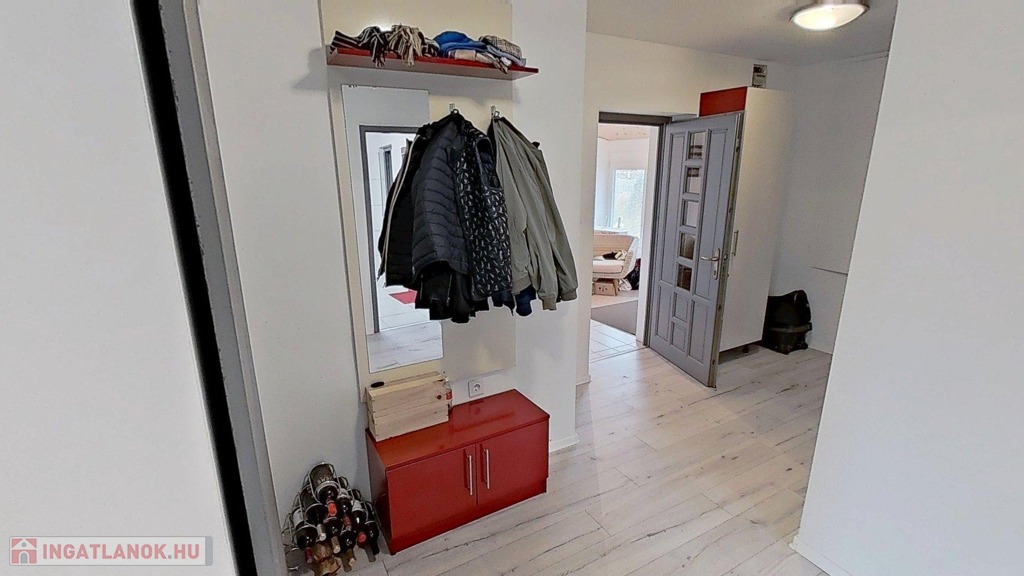 Az ingatlanba belépve egy szép előtér/loggia fogad minket, innen a lakás előterébe érünk. Innen nyílik a nagy háló, a fürdő/wc és a nappali is. A fürdő a hálóból és az előtérből is nyílik, így ha vendégek vannak, akkor nem kell egymást zavarni a fürdő használatakor.