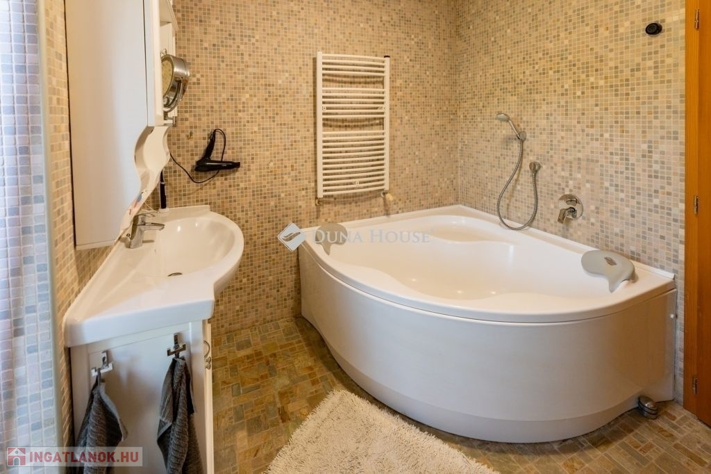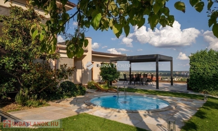Eladó egy ritka gyöngyszem ingatlan, mely 2000 m2-es telken lévő családi otthon, 380 m² összterülettel büszkélkedhet, ideértve a fő lakóteret, amely 5 hálószobával , rendelkezik . Ezenkívül egy külön 55 m²-es lakást, egy 2 beállásos garázst, tárolókat, valamint egy több mint 100 m²-es, természetes kőburkolatú terasszal, pergolával ,parkosított kerttel, halas tóval .Legyen szó akár nagyobb családokról, akár olyanokról, akik szeretik a vendégeiket luxus körülmények között fogadni, ez az ingatlan tökéletes választás lehet. Az elszeparált lakrész lehetőséget nyújt vendégek kényelmes elszállásolására vagy akár egy nagyobb korú gyermek önálló életterének kialakítására is.Az ingatlan nem csupán a luxus szolgáltatásaival, hanem esztétikai értékeivel is kiemelkedik. A magas minőségű anyagok felhasználása és a részletekre való odafigyelés egy olyan otthont teremt, amely minden igényt kielégít. A panorámás kilátás pedig még inkább emeli az ingatlan értékét, hiszen minden napja egy festménybe illő látvánnyal kezdődhet.A kényelem és a luxus jegyében épült ingatlanban minden megtalálható, amire csak vágyhat: egy gyönyörűen kialakított medence, szauna, pezsgőfürdő, hangulatos teraszok, és természetesen a téli estéket kellemessé tevő kandalló. A napfényes terek gondoskodnak arról, hogy otthona mindig világos és meleg legyen, míg a modern klímaberendezés a nyári napokat is kellemessé teszi.Összefoglalva, ez az ingatlan nem csupán egy lakóhely, hanem egy olyan befektetés, amely értékálló marad a jövőben is. Ha Ön egy olyan otthont keres, ahol a luxus, a kényelem és a lélegzetelállító kilátás mindennapos, ne keressen tovább. Fedezze fel, mit kínál ez a különleges ingatlan és tegyen egy lépést álmai otthona felé.