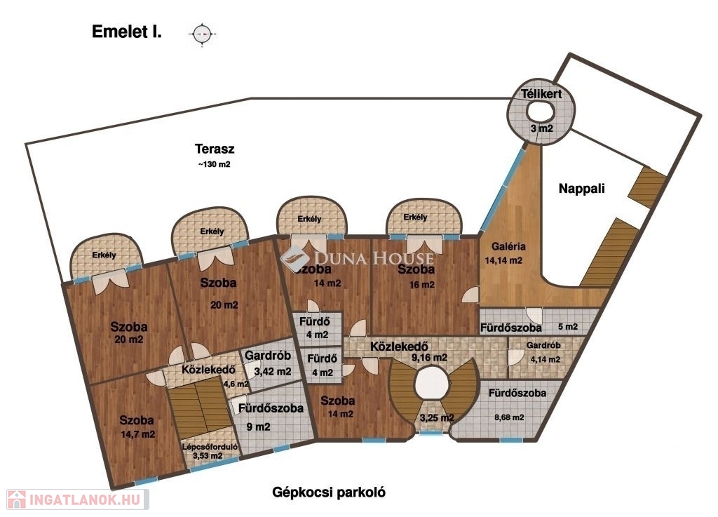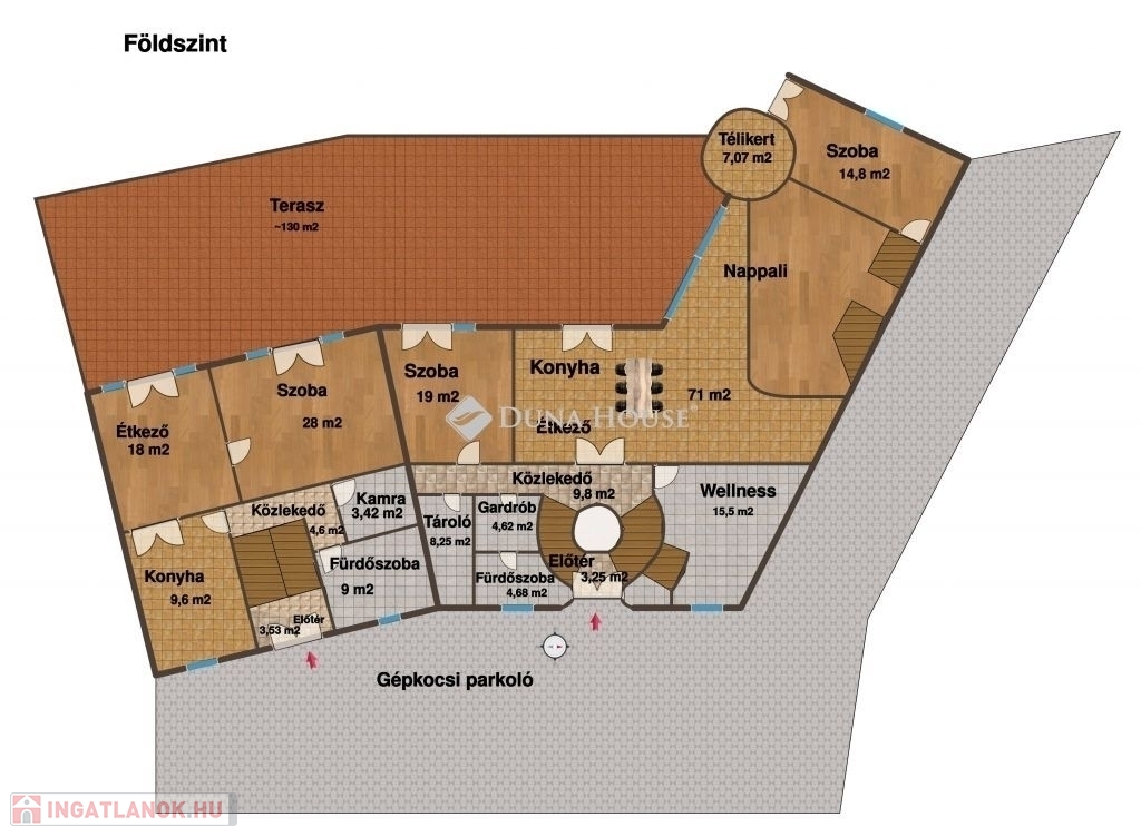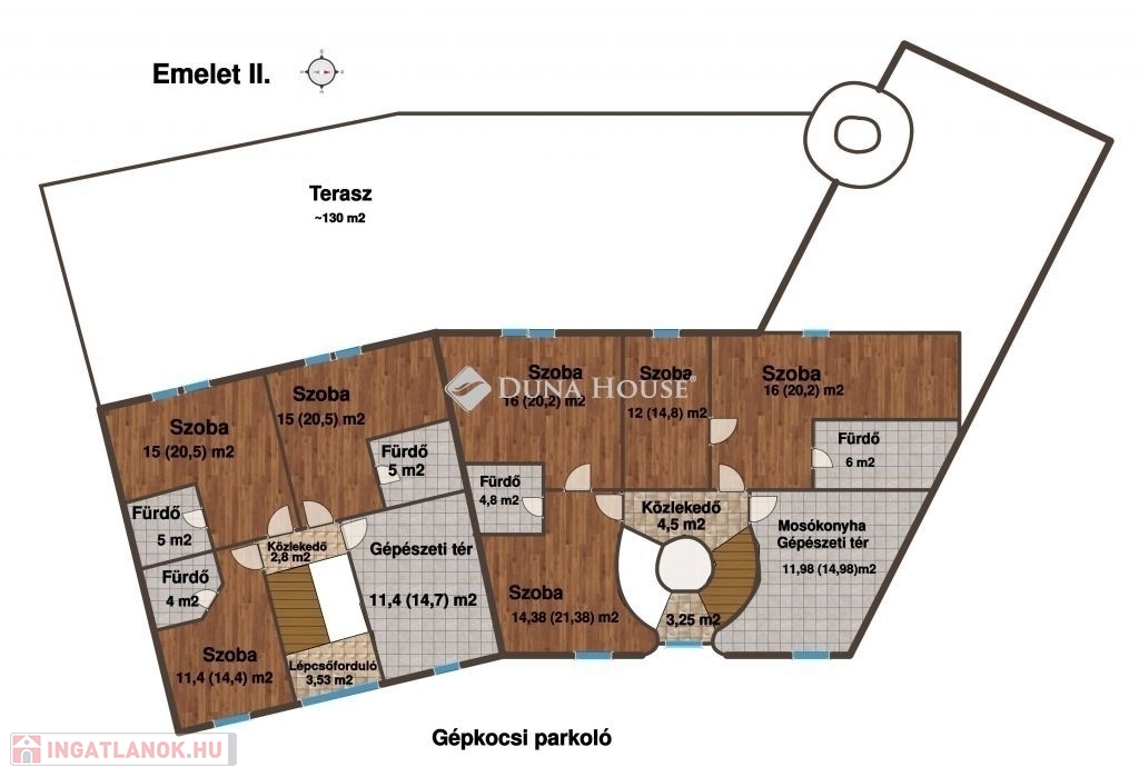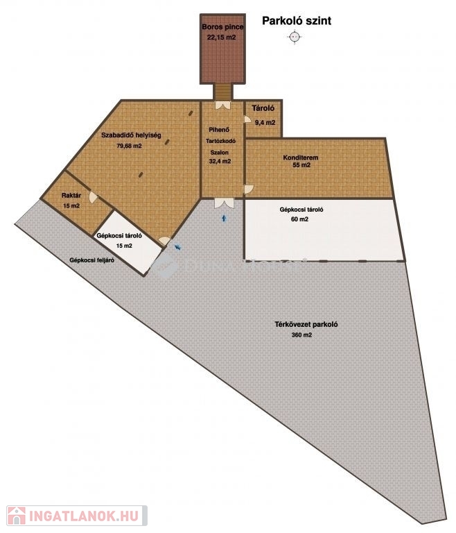 több mint 200 m² parkolófelület az ingatlan udvarán,