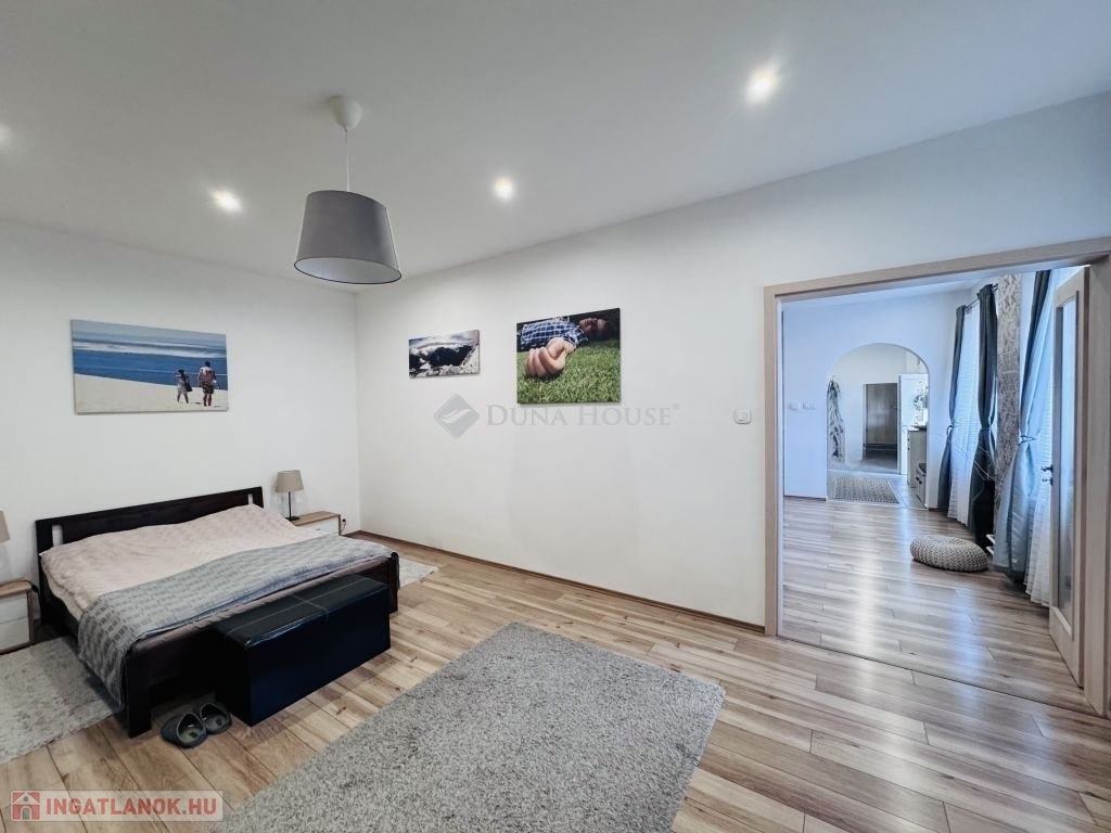 Pécs közkedvelt Patacsi városrészén eladóvá vált egy közel 100 m²-es, teljeskörűen felújított lakás amelyhez saját, kb. 350 m²-es kert tartozik.Az ingatlan praktikus elrendezésű: két külön nyíló hálószobával, valamint egy tágas, világos nappalikonyhaétkező egybenyitott élettérrel rendelkezik, amely ideális családi együttlétekhez és vendégfogadáshoz is.A lakás teljes körű felújításon esett át, mely során:a villanyvezetékek cseréje megtörtént,a mennyezet szigetelést kapott,új burkolatok kerültek beépítésre,valamint modern, műanyag nyílászárók lettek beépítve.A ház előtt egy autó számára kényelmes parkolási lehetőség biztosított.A csendes, családi házas környezet és a saját kert kiváló lehetőséget kínál pihenésre, kertészkedésre vagy akár családi programokhoz.