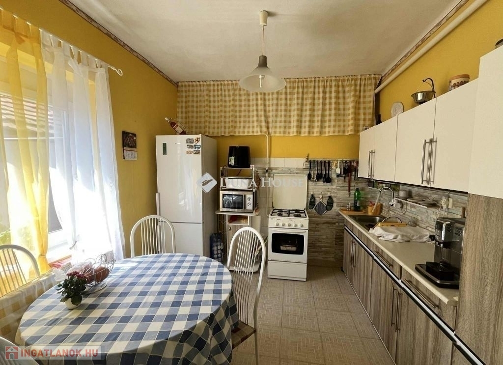 Eladásra kínálok egy szép nagy kerttel rendelkező, kétszintes családi házat Pécs csendes, családi házas környékén.Az ingatlan utcafronti nézettel büszkélkedhet, és kitűnő fényviszonyokkal rendelkezik, sík telken, jó közösségű utcában vaAz épület szerkezete tégla.A fűtésről egy vegyes tüzelésű kazán gondoskodik, valamint gázkonvektor is rendelkezésre áll, így a leendő tulajdonos szabadon választhat a fűtés módja között, aszerint, ami a leginkább megfelel az igényeinek.A födém jó állapotú vasbeton, a tetőszerkezet nyeregtető.Részben új műanyag nyílászárók vannak.A meleg víz ellátást villanybojler biztosítja.Az alsó szinten 2 szoba, 1 nappali, konyha, fürdő és külön wc kapott helyet.Az egyik szobában egy kis elkülönített kamra is van.A felső szinten egy nagyméretű szoba és egy kisebb szoba van erkéllyel, a TV toronyra néző kilátással.A tetőtér beépíthető, ezt el is kezdték csinálni, de végül abbamaradt, így az új lakó saját igényei szerint akár kialakíthat még egy fürdőt illetve egy szobát pluszban.Az ingatlanhoz tartozik egy jó méretű garázs, rengeteg tároló, műhely, illetve tartozik hozzá egy melléképület, mely egy kisebb felújítás után lakhatásra is alkalmas.Gyönyörű szép, rendezett udvarral büszkélkedhet, rengeteg virág, gyümölcs és zöldség megtalálható a kertben. Az ingatlan 83 000 000 forint vételárú.Amennyiben felkeltette az érdeklődését ez a lehetőségekkel teli ingatlan, keressen bizalommal és örömmel állok rendelkezésére.