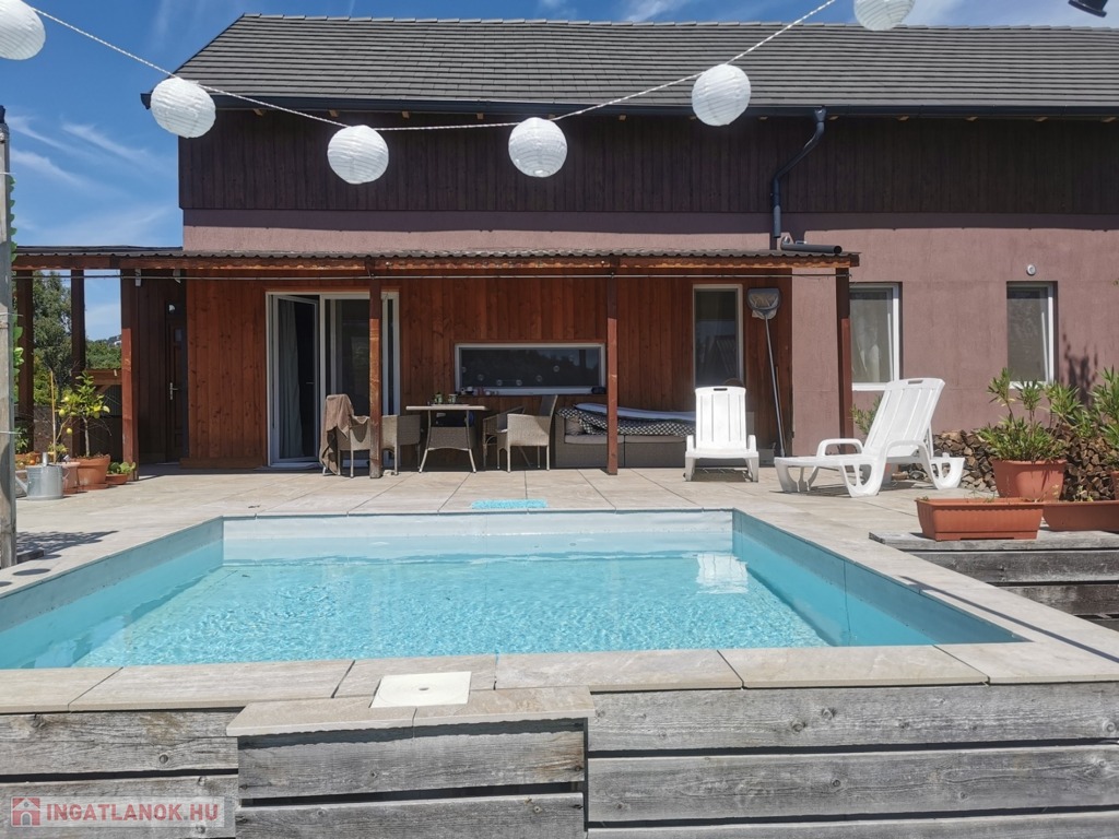 A nappliból nyíló 50m2-es teraszon medence is helyet kapott.