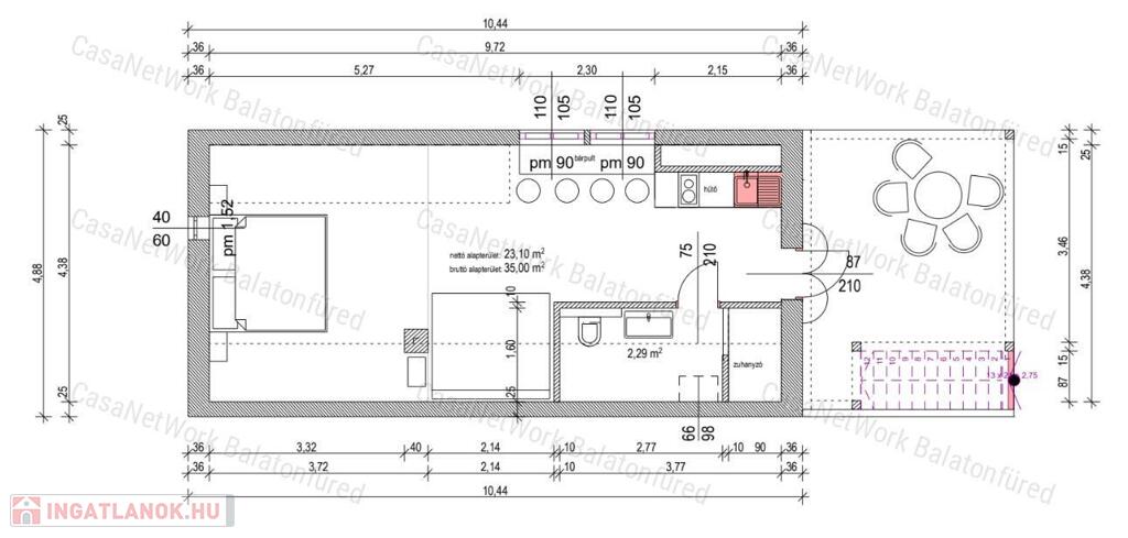 4413 m² terület, 72 m²-es vendégház 50+15 m2-es teraszokkal (földszint+tetőtér)