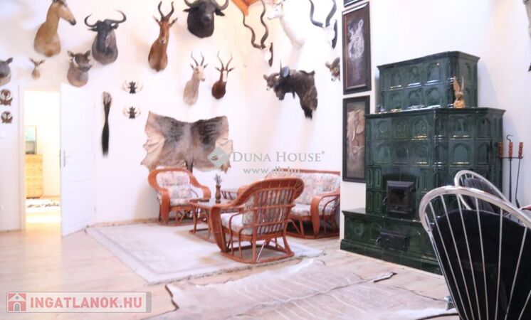 Eladóvá vált Pécsváradtól és a Dombay tótól 1 km-re lévő, 1902-ben épített Kúria! Ideális ingatlan befektetés, intim, elszeparált családi birtoknak, vagy akár üzleti célra, vendégháznak, vadászháznak, rendezvényháznak! Az épület együttes egy halastó szomszédságában, közel két hektár, 19600m2, parkosított, körbekerített területen fekszik rálátással a Zengőre, ahová egy Székely kapun keresztül érkezünk meg. A főépület br. 306 m2, Kelet-Nyugati tájolású, melyhez egy 17 és egy 26 m2-es fedett terasz kapcsolódik.A földszint tágas terekből áll össze, mely magas, nagyméretű ablakokkal határolt, belmagassága 3,65m, körbenapozott, így kellemes, világos, szellős miliőt biztosít reggeltől, estig. A nappali ideális méretű, 41m2, ahonnét a biliárd szoba, valamint a keleti terasz közelíthető meg, mely nyáron a délutáni órákban kellemes, hűs időtöltésre ad lehetőséget, kilátással az ősfás parkra. Ezen a szinten, egyebek mellett, helyet kapott még kettő hálószoba, melyekhez saját fürdő tartozik és egy 24 m2-es étkező, amihez a nyugati oldali terasz és asztalos által, egyedileg, keményfából gyártott konyhabútorral felszerelt, gépesített konyha kapcsolódik. Ennek az épületnek egyebek mellett, egyik ékessége a Zsolnay gyár által egyedileg tervezett és készített, kézzel festett majolika cserépkályha, ami biliárd helységben található.Az épület alatt egy boltíves, téglával kirakott 37m2-es boros pince, széles, 18m2 közlekedő, egy 17m2 és egy 26 m2-es, kibetonozott alagsori helyiség található, ami további lehetőségeket rejt magában, akár wellness vagy konditerem kialakítható. További bővítésre a tetőtér irányába van lehetőség, ahol több apartman vagy háló helységek is kialakíthatóak.A területen továbbá helyet kapott egy bruttó 311m2-es vendégház, ami 23m2 déli tájolású fedett teraszról közelíthető meg. Az épület közepén 35m2 nappali található, amit egy nagyon szép Zsolnai cserépkályha díszít. Innen jobbra és balra egy-egy hálószoba nyílik, saját fürdőszobával. Az épület nyugati oldalán, a terület bejárata felől, 31m2 kétállásos garázs, tárolóval, a nyugati oldalon pedig fedett, 37m2 kiülő, nyári konyhával került kialakításra, ami szükség esetén beépíthető és így további apartman nyerhető belőle.A két épület felújítása 2002-2007 között történt, mely során, mid műszakilag, mind esztétikailag teljesen megújultak. -A külső nyílászárók keményfából, betörésbiztos hőszigetelt üvegezéssel, a belső ajtók is egyedileg, tömör fából készültek. -A külső és belső hideg burkolások 1. osztályú, Süttői mészkőből készültek, a parketta pedig minőségi tölgyfából lett lerakva.-A fűtés, épületenként egy-egy gázkazánnal megoldott, melyek 5m3 földbe süllyesztett gáztartályról vannak táplálva.Jöjjön el , nézze meg, érdemes!!! További információkért hívjon a megadott számon.