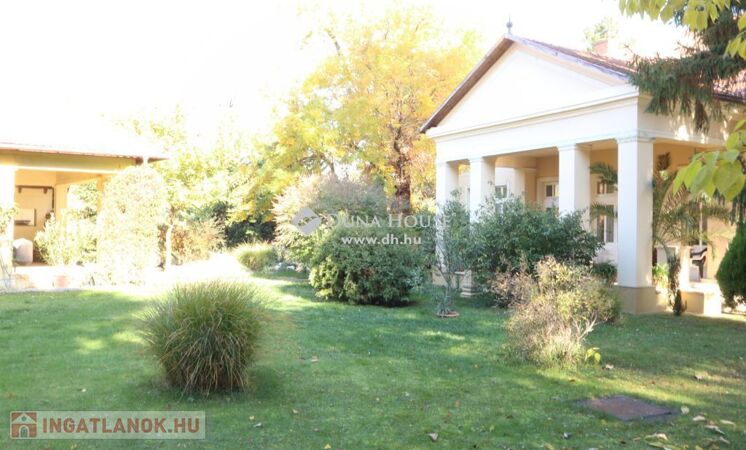 A földszint tágas terekből áll össze, mely magas, nagyméretű ablakokkal határolt, belmagassága 3,65m, körbenapozott, így kellemes, világos, szellős miliőt biztosít reggeltől, estig. A nappali ideális méretű, 41m2, ahonnét a biliárd szoba, valamint a keleti terasz közelíthető meg, mely nyáron a délutáni órákban kellemes, hűs időtöltésre ad lehetőséget, kilátással az ősfás parkra. Ezen a szinten, egyebek mellett, helyet kapott még kettő hálószoba, melyekhez saját fürdő tartozik és egy 24 m2-es étkező, amihez a nyugati oldali terasz és asztalos által, egyedileg, keményfából gyártott konyhabútorral felszerelt, gépesített konyha kapcsolódik. Ennek az épületnek egyebek mellett, egyik ékessége a Zsolnay gyár által egyedileg tervezett és készített, kézzel festett majolika cserépkályha, ami biliárd helységben található.