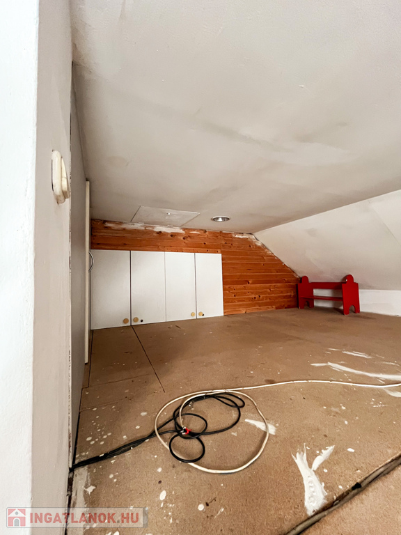 A ház belülről rendben van, albérlők lakták. Ami még kitűnhet a képekből, az az, hogy a 2 szoba mellett egy galéria is része a nappalinak.