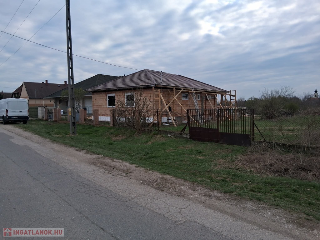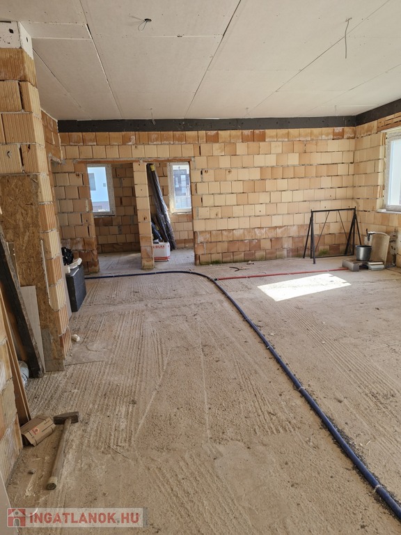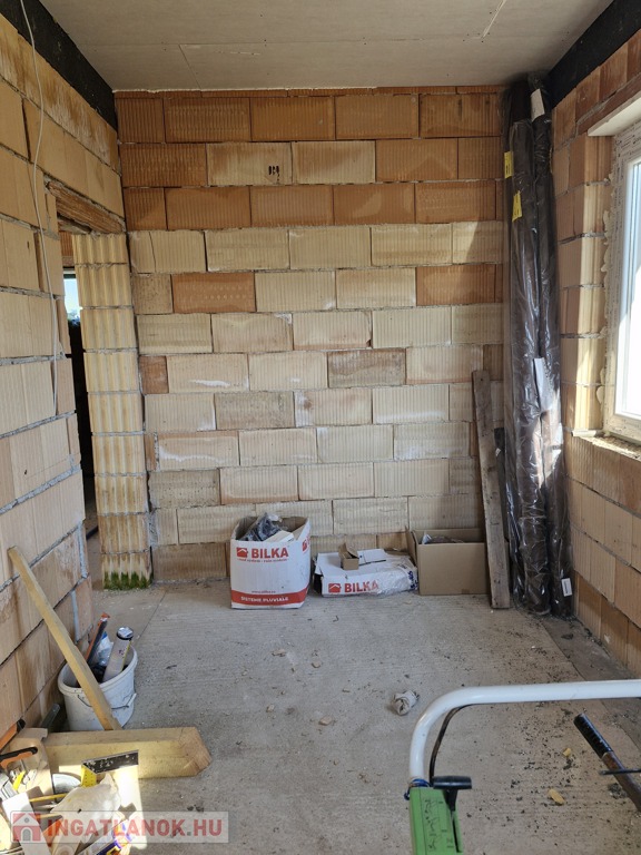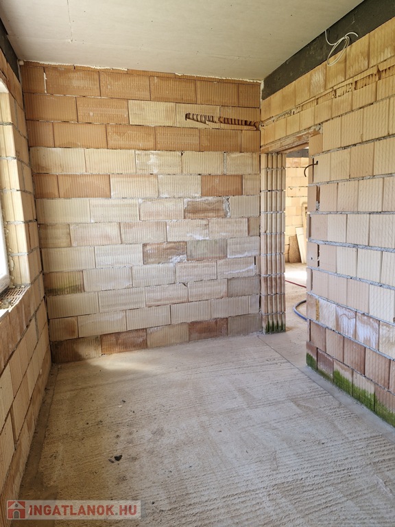 A ház alapterülete 120 m2, a telek 2300 m2.A telken bőven van hely plusz melléképület, garázs, kerti tároló, stb. kialakításához. Elosztása: 3 szoba, plusz egy nagy légterű amerikai konyha-nappali, egy nagyobb, családi fürdőszoba (kád+zuhany), és a szülői háló mellett egy kisebb fürdőszoba (csak zuhanyzó). Valamint egy háztartási helyiség is van az épületben, itt már előkészített kiállások a mosó-és szárítógép számára. A ház 30as Porotherm téglából épült, erre 15 cm vastag grafitos hőszigetelés került, a födémbe 30 cm padlás szigetelés került.A fűtést, melegvizet és a hűtést korszerű hőszivattyú biztosítja, melyhez gazdaságos H tarifa is rendelekzésre áll. A tetőszerkezet kialakítása lehető teszi a későbbiekben napelem rendszer telepítését, de ez már a leendő tulajodnosra vár.