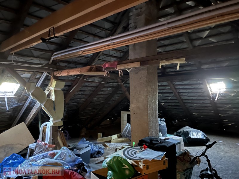 -A tető pala fedésű, a gerendák jó állapotban vannak, üveggyapot hőszigetelés került a padlástérbe, amely igény szerint beépíthető