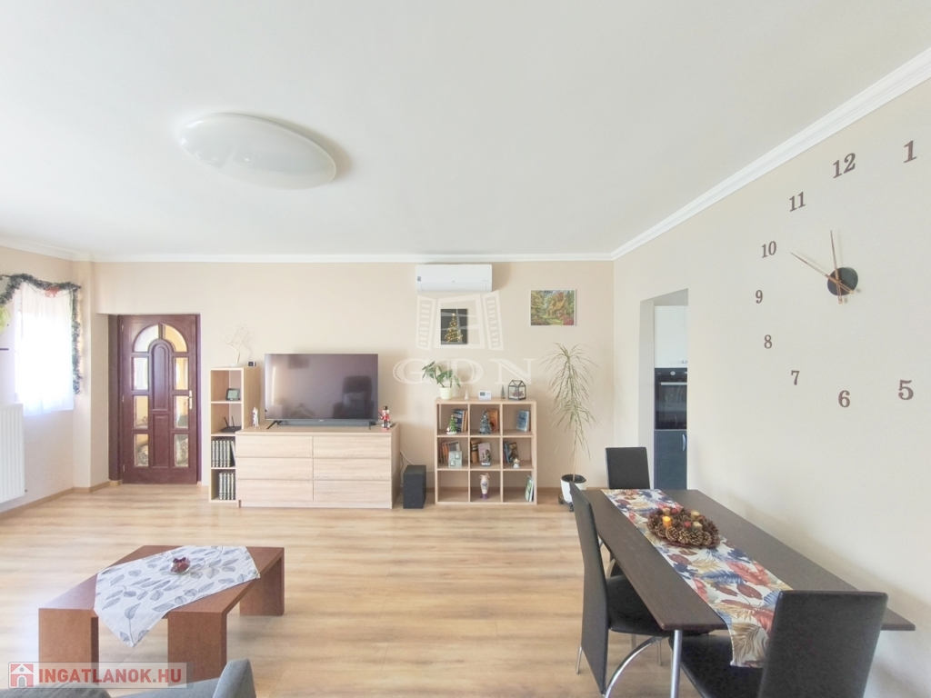 A 101 m² hasznos alapterületű, porotherm téglából épült, vasbeton födémmel és Bramac tetővel ellátott otthon kiváló műszaki állapotban van, teljeskörű 10 cm vastag szigetelésének köszönhetően pedig rendkívül alacsony fenntartási költségeket biztosít.