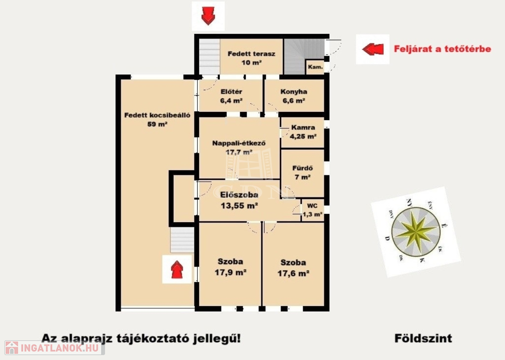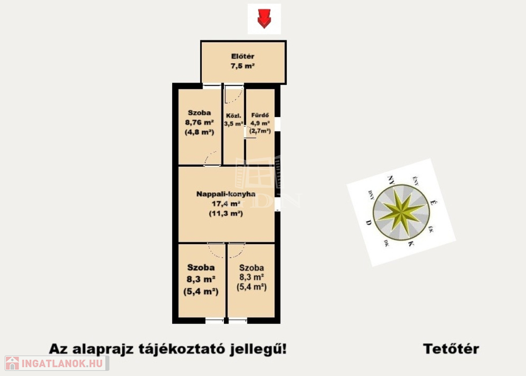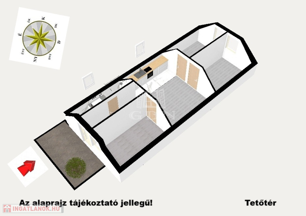• Tetőtér: konyha-étkező, fürdőszoba, 3 szoba
