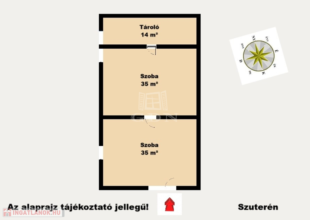 • Földszint: előszoba, nappali, konyha, fürdőszoba, 2 szoba