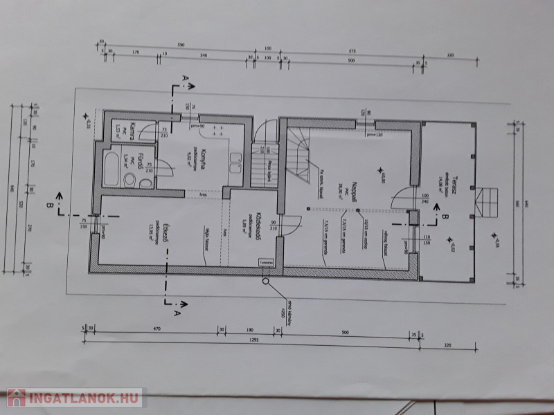 A 814 nm-es telken elhelyezkedő házban a földszinten egy nagy nappali, tágas étkező-konyha, fürdőszoba, kamra, a tetőtérben pedig a folyosóról 3 hálószoba, és WC található. A nappaliba egy tágas, fedett teraszon keresztül jutunk be.