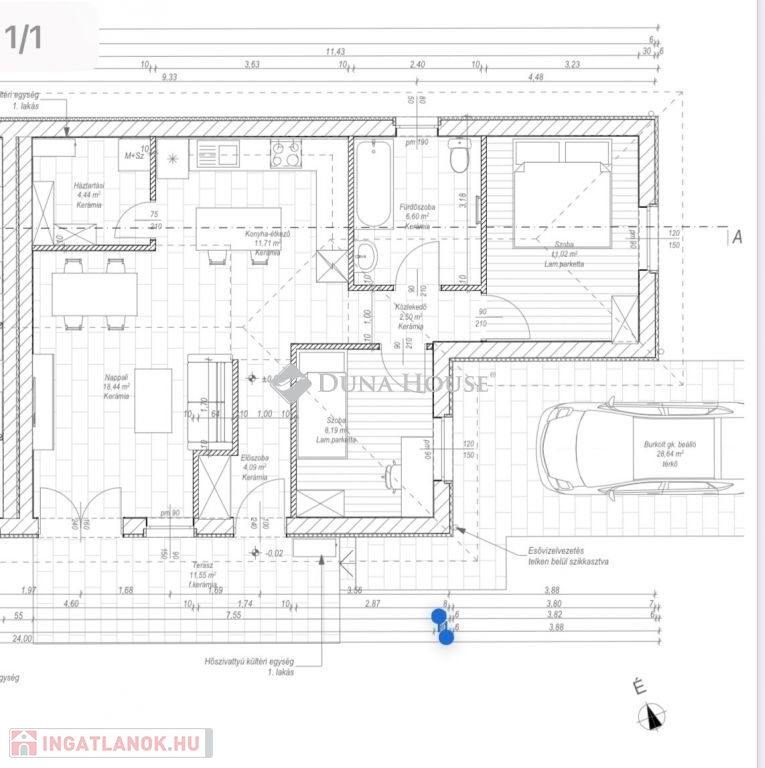 Kialakítása: 2 szoba, tágas amerikai nappali konyha, háztartási helyiség, előtér, közlekedő, fürdő+wc, nyitott terasz.