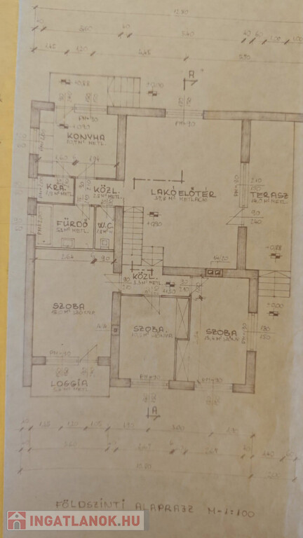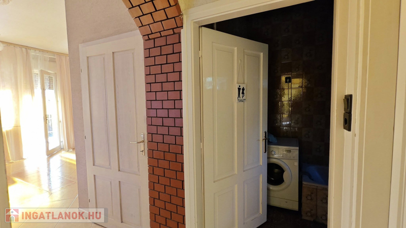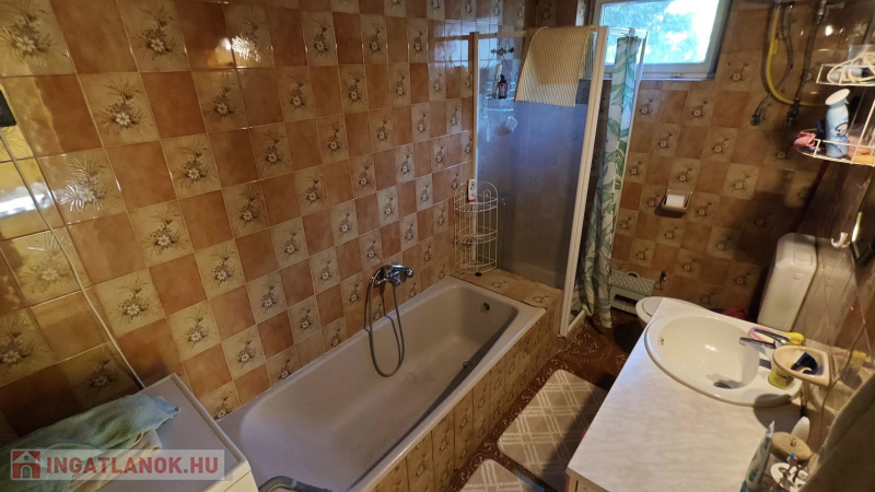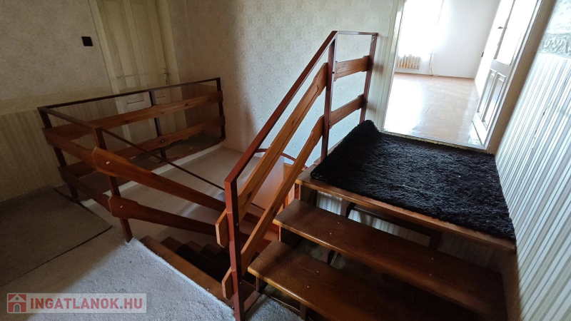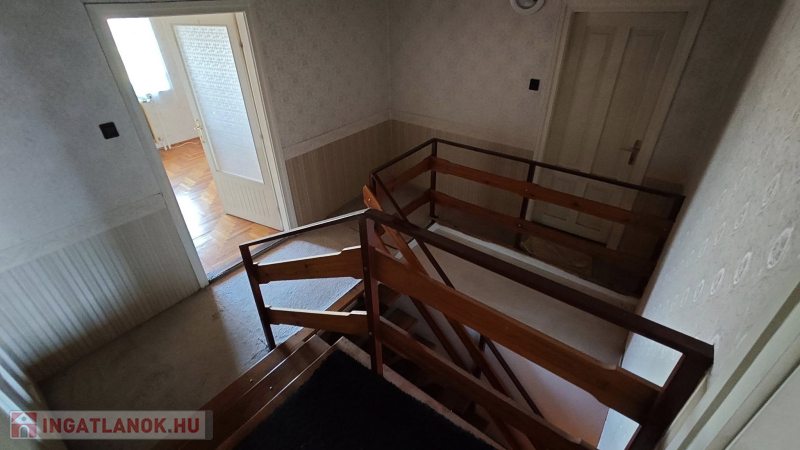 Ebédlő , konyha ,kamra fürdő wc-vel kiosztással ,illetve 3 háló az utca felőli oldalon , és a padlástérben 2 nagyobb méretű szoba adott.