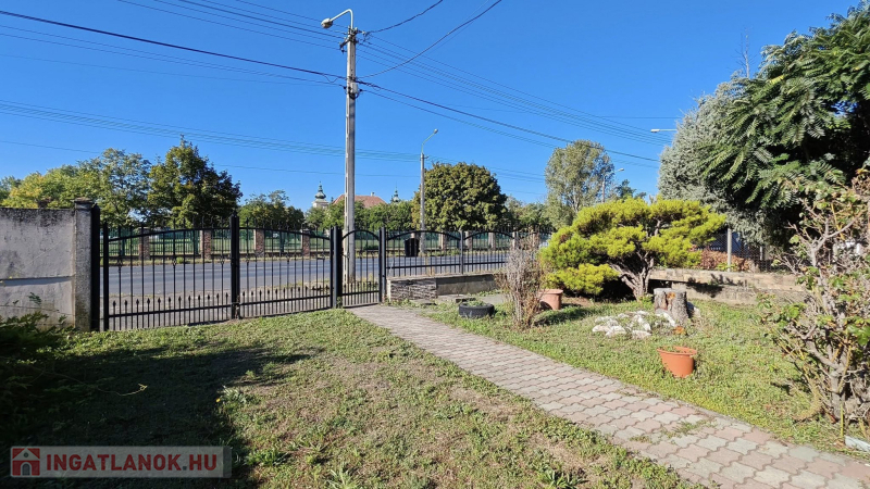Konyha kerti rész is adott. Az udvar parkosított, térkövezett , kovácsolt vas kerítés utcafront felől. Minden közmű adott.