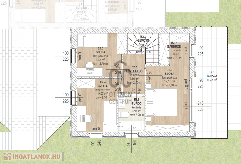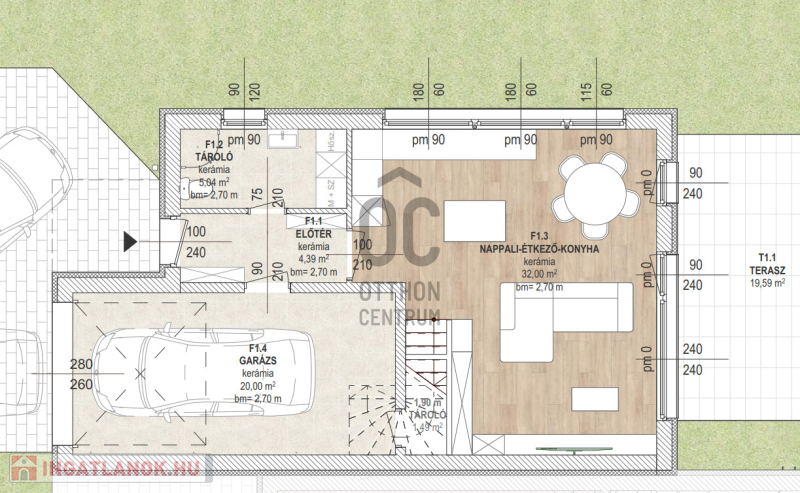- nettó alapterülete 106,43 négyzetméter teraszokkal és garázzsal 123 nm
