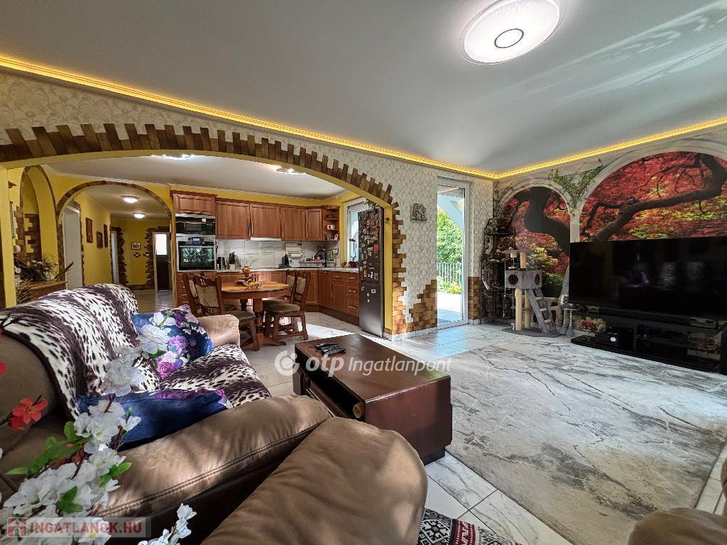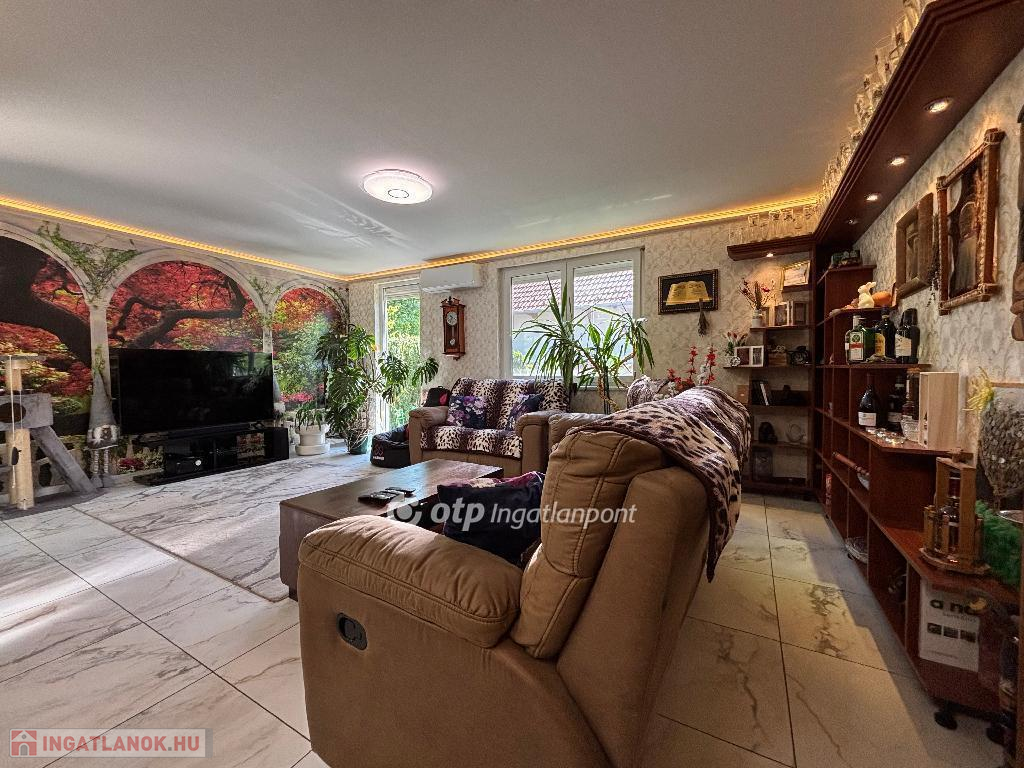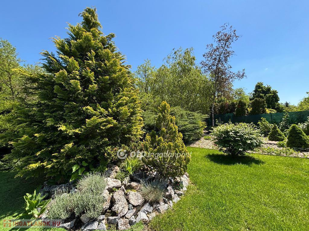 Az 1165 m2-es telken elhelyezkedő, 181 m2 hasznos alapterületű, egyszintes, könnyűszerkezetes ház 2003-ban épült, és azóta is gondosan karbantartott. Az épület egy 33 m2-es, kétállásos garázzsal rendelkezik, amely mellett szauna és zuhanyzós pihenőrészleg is kiépítésre került - tökéletes hely a feltöltődésre vagy vendégszobaként is használható.
