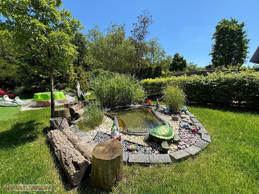 A gondozott, parkosított kert teljes területén automata locsolórendszer működik. A hátsó kertben kerti sütögető, bográcsozó, valamint egy négyfős jakuzzi várja az itt élőket. Egy kis hátsó kapun keresztül közvetlen kijutás biztosított az erdei ösvényekhez, ahonnan elérhető a Pilisi Parkerdő, a Dévényi Antal kilátó és a Ferenc-forrás is.