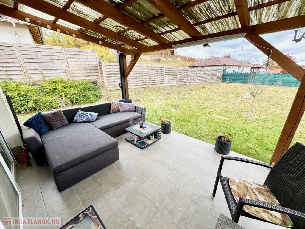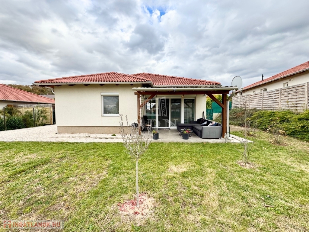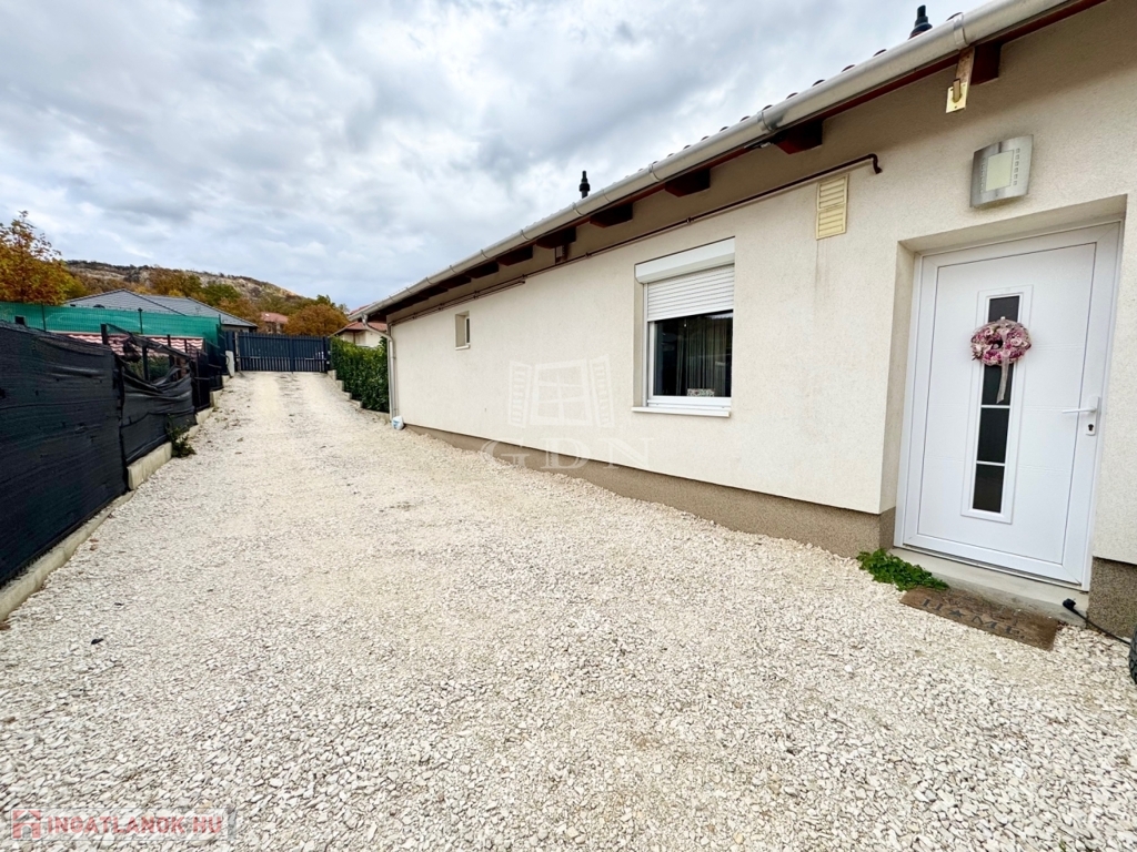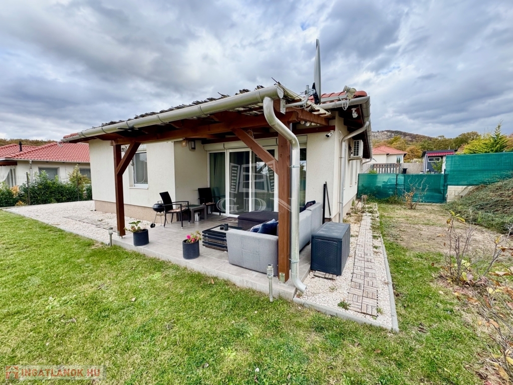 Budapest és Esztergom között a pilisi hegyek ölelésében található hangulatos településen, Pilisjászfalun újonnan, a Somlyó völgyi lakóparkban, csendes jelenleg még murvával borított összközműves mellékutcában, 800 nm-es saját kerttel rendelkező, 2020-ban épült, szigetelt, egyszintes, 71 nm-es lakóterületű, nappali + 3 háló szobás, amerikai konyhás, kamrás, közvetlen kert-teraszkapcsolatos, kiváló elosztású, külön nyíló szobás, napos-világos D-NY-i fekvésű, alacsony fenntartású, modern, kondenzációs gázkazán fűtésű, újszerű állapotú, klimatizált, riasztórendszerrel felszerelt ikerház fél, beépített, gépesített konyhával, 2 gépkocsi számára alkalmas felszíni gépkocsi beállóval, 8 nm-es kerti tárolóval, gondozott kerttel, eladó.