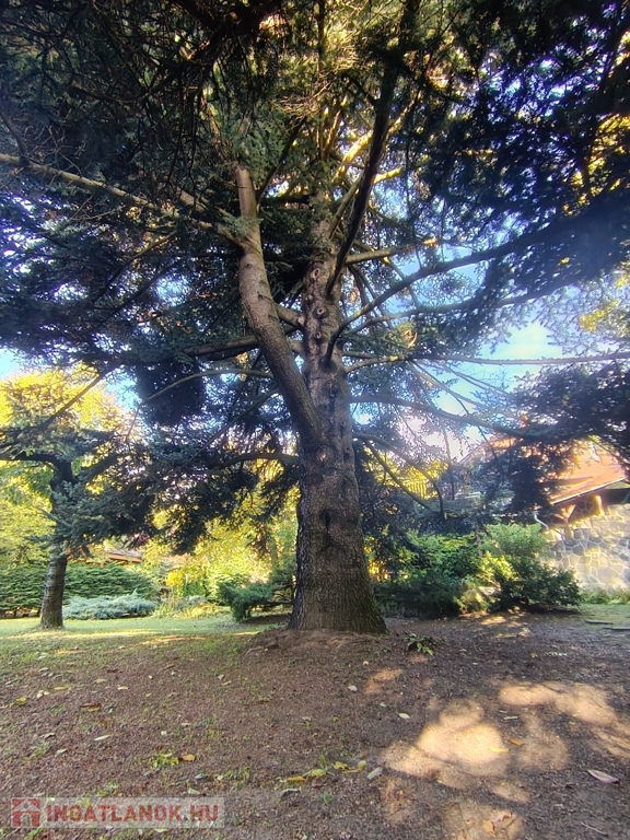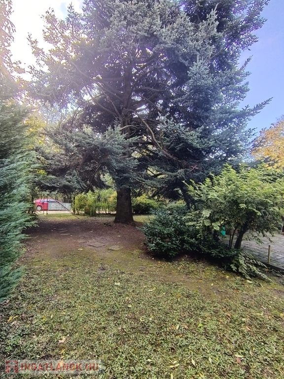 A kert 1667 nm nagyságú, gondozott, számtalan dísznövény, és fenyő található rajta. A telek arányos téglalap alakú, az épület a telek középső részén helyezkedik el.