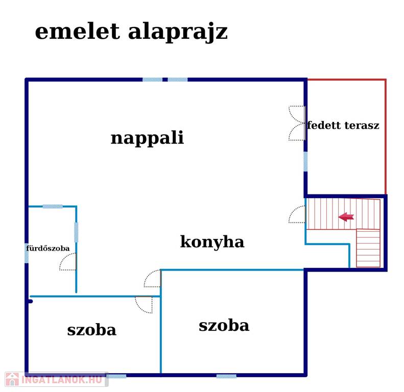 *Ezen a szinten a nyilászárók műanyagok, padlófűtéses hőleadók lettek kialakítva, (a szobákban lapradiátor) így a hőérzet is kedvezőbb.
