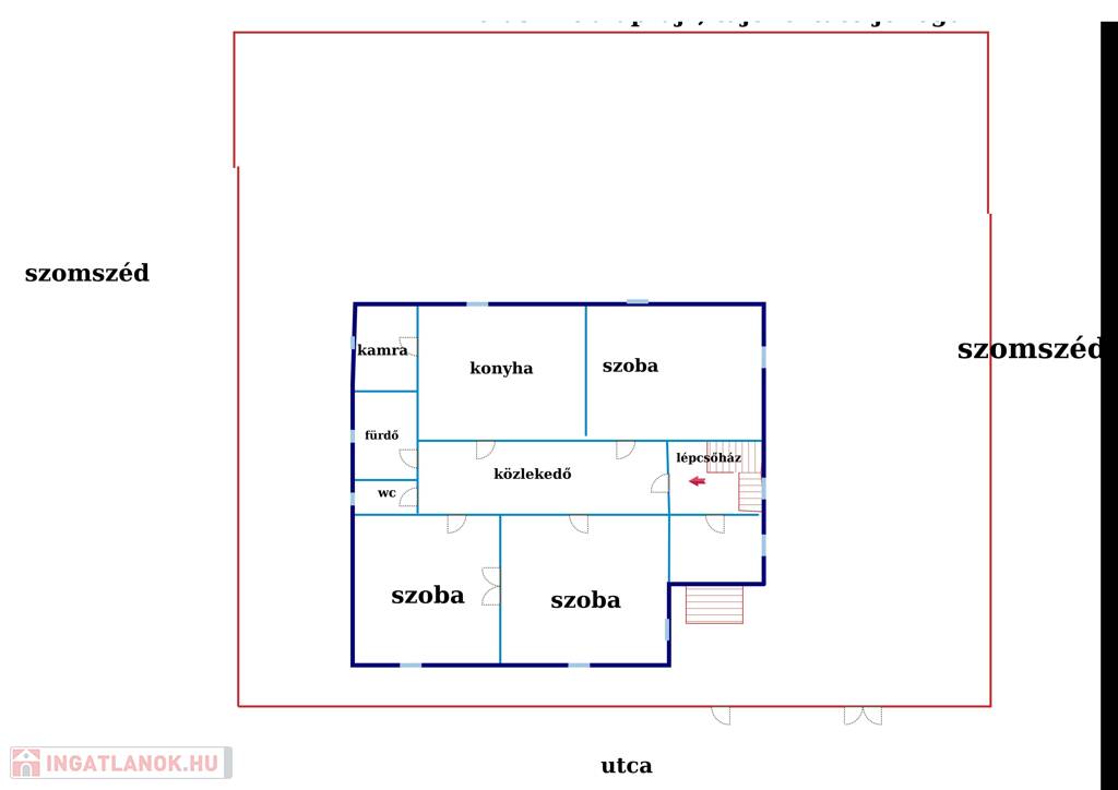 *Az földszinten három tágas szoba található, lapradiátoros hőleadók biztosítják a meleget, körbenapozott nagyon világosak a helységek.