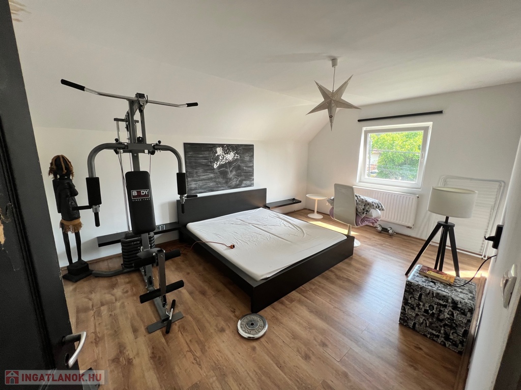 A családi ház több ütembe készült, a tetőtér kb 10 évvel ezelőtt lett kialakítva ami igen modern stílust kapott.