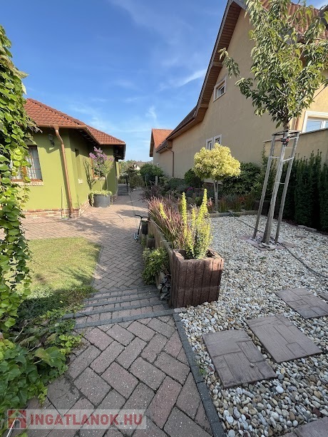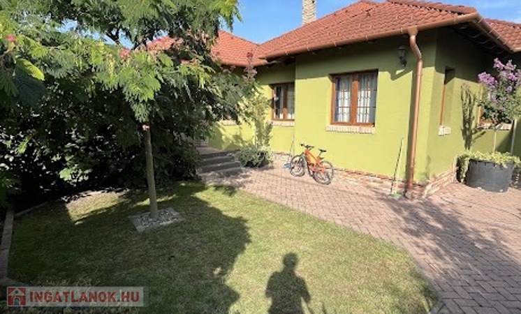 Az ingatlan aszfaltozott közútkapcsolattal rendelkezik, az utcakép rendezett. A 800m2, téglalap alakú teljesen parkosított, kerített telken áll egy oldalhatáros elrendezéssel, hagyományos építési technológiával kivitelezett egyszintes családi ház. Az ingatlan kitűnő állapotban van, rendezett, karbantartott. A telken található még egy kerti szaletli. Az ingatlan összközműves.