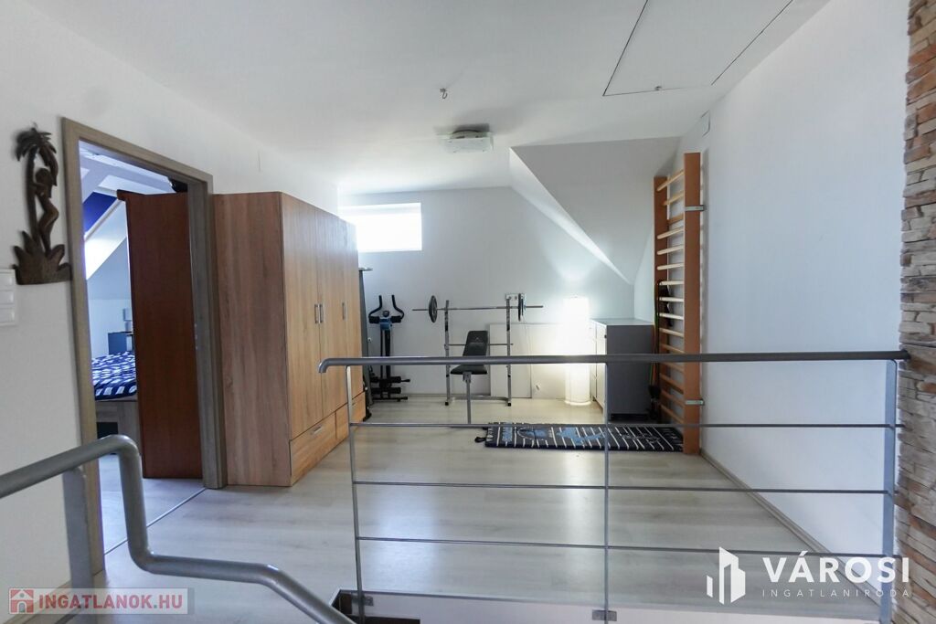 A házhoz tartozik egy kényelmes terasz, ahol élvezheti a csendes utca nyugalmát és a saját kertrész adta lehetőségeket. A biztonságos parkolást az elektromos garázskapu teszi egyszerűvé, és az erkélyről elénk táruló kilátás további élményt nyújt. Az udvaron több járműnek is kényelmesen van hely.